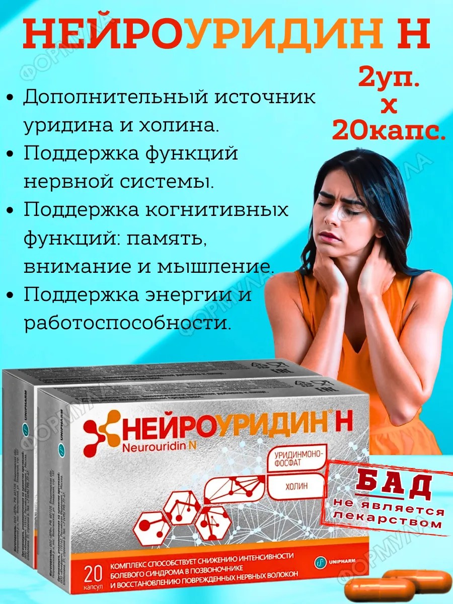 БАД Нейроуридин Н капсулы уридинмонофосфат холин для мозга памяти нервной системы внимания концентрации энергии работоспособности — это современная пищевая добавка, созданная для поддержки когнитивных функций и сохранения активности нервных клеток. Уникальное сочетание уридина и холина считается одним из наиболее ценных для поддержания работы нервной системы. Эти вещества естественным образом участвуют в обменных процессах, влияя на формирование связей между нейронами, синтез ацетилхолина и работу мозга.