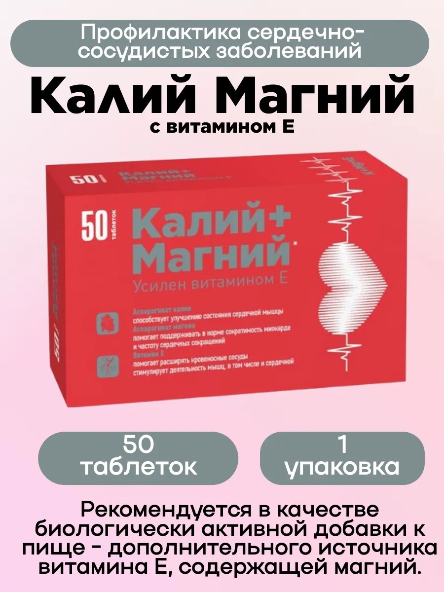 | Комплектация | Калий Магний с витамином Е таб 50 шт; 1 упаковка |