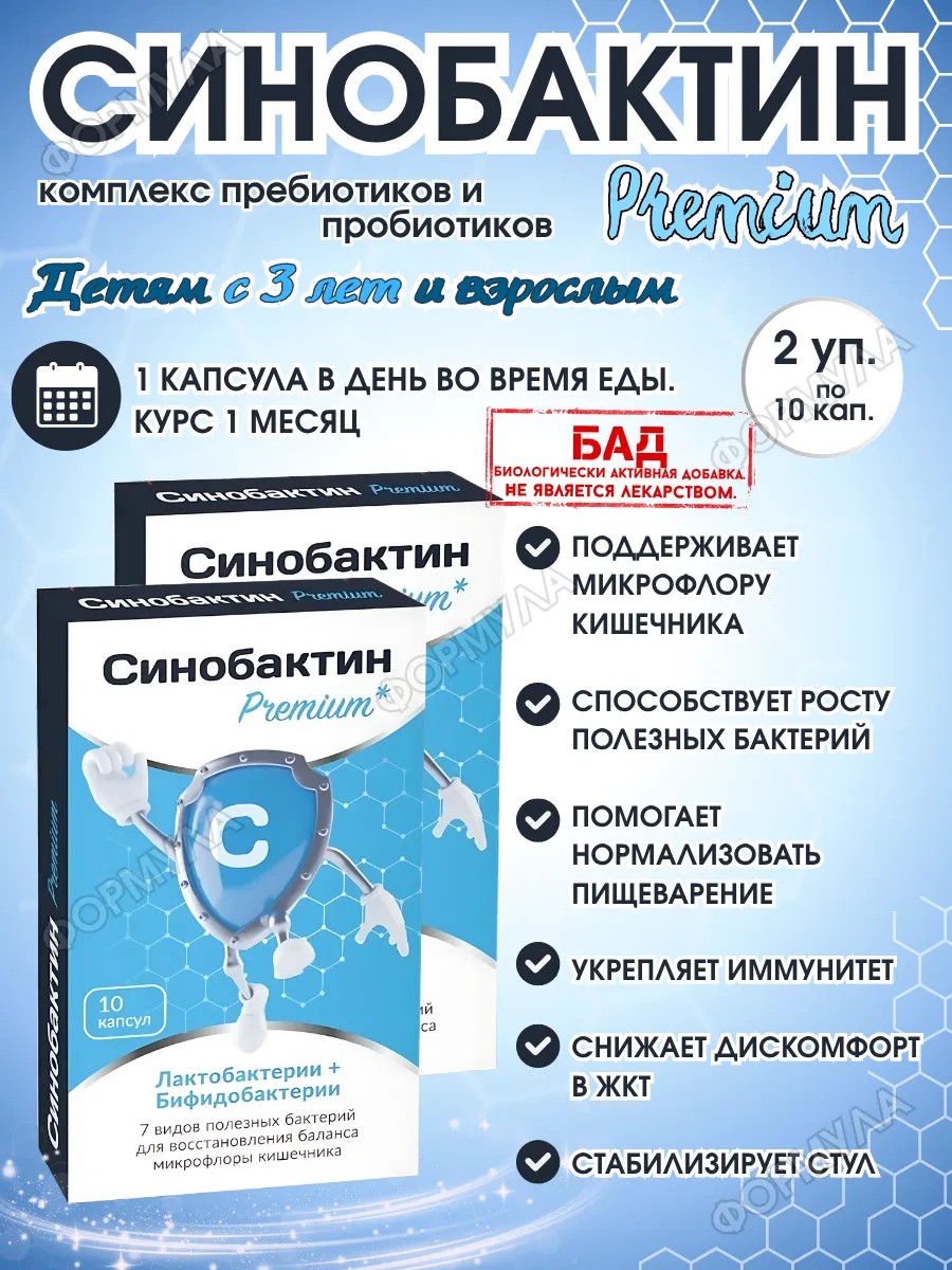 | Комплектация | Синобактин Premium Капс. Комплекс Пребиотика И Пробиотиков N10; 2 уп |