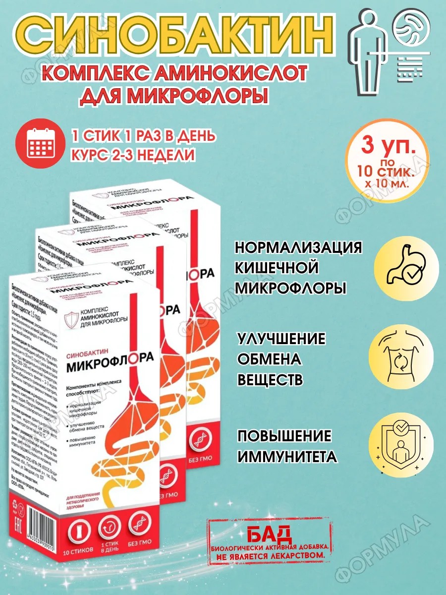 | Комплектация | Синобактин, Комплекс Для Микрофлоры Стик №10; 3 уп |