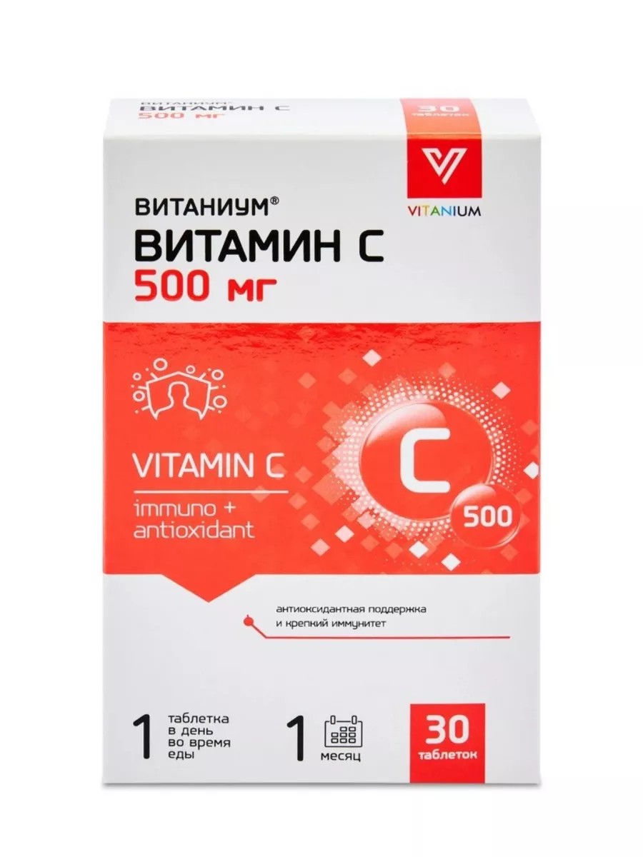 Витамин С 500 ВИТАНИУМ - 500 мг витамина С в таблетке для поддержки иммунитета и антиоксидантной защиты организма.