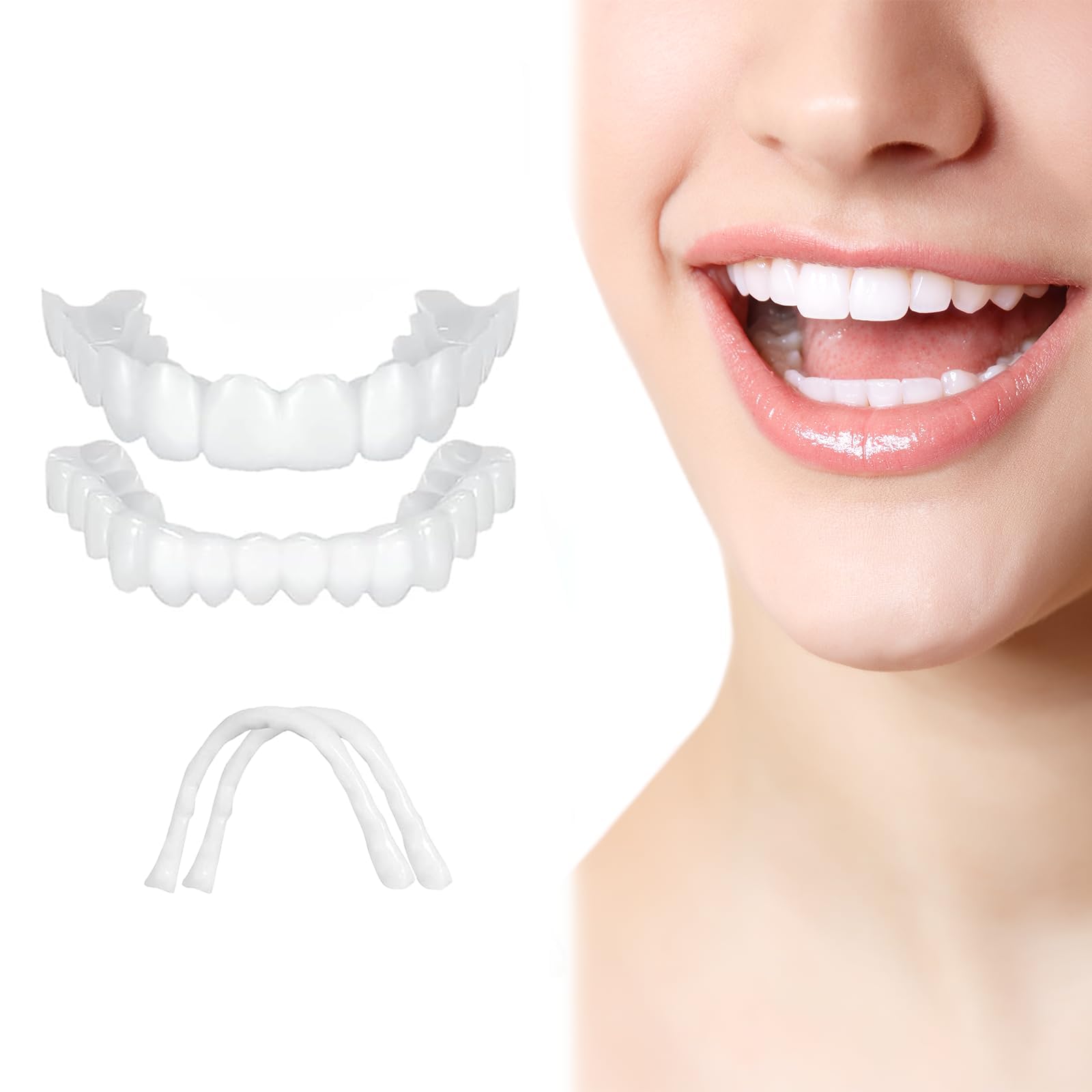 Product Name: Clip-on Silicone Dental Veneers, Temporary Whitening of Upper and Lower False Teeth for Men and Women, Comfortable and Natural White Instant Veneer Dentures. Features : Suitable for both men and women, our clip-on dental veneers are ideal for people with bad teeth who want to improve their smile instantly. This is a great choice for those looking to whiten their teeth quickly without having to undergo expensive dental procedures. The set contains: 2 pairs of instant veneer dentures 4 pieces of gutta-percha 2 storage boxes 2 pliers Instructions 1. Dip the silica gel strip into warm water. 2. Use mini tweezers to place the silica gel strip into the false teeth. 3. Place the false teeth on your own teeth. 4. Adjust the false teeth to a comfortable position. Noticed : Dental veneers are only to help you immediately improve your appearance and have no medical effect on your teeth. Do not use this product when exercising, smoking or drinking hot beverages.[Important] The silicone gum strip material is the one that covers your teeth "NOT" the actual plastic teeth with the holes in the impression. Mold the gum strip using your hands or the plastic teeth as a model. [Suitable for Everyone] Our dental care kit is suitable for both men and women. Whether you have missing teeth, want to cover dental problems, or simply want a flawless smile, we offer a wonderful solution. [Simple to Use] Instant in smile is very comfortable and adjustable, immerse the veneers in warm water to soften them, then place them on your teeth, bite down to customize the fit, and adjust them to your preferred comfort. [Material] Silica gel dental veneers, safe and non-toxic. Very convenient, apply to missing upper or lower teeth, conceal crooked, stained, and gapped teeth, reusable temporary smile device. [Dental Veneers Set]What You Get: 2 pairs of false teeth (upper lower) for temporary upper teeth repair and 4 gutta-percha with 2 storage boxes, enough to meet your daily needs and replacement. Nom du produit : Placages dentaires en silicone à clipser, blanchiment temporaire des fausses dents supérieures et inférieures pour hommes et femmes, prothèses dentaires à facettes instantanées blanches confortables et naturelles. Caractéristiques : Convient aussi bien aux hommes qu'aux femmes, nos facettes dentaires à clipser sont idéales pour les personnes ayant de mauvaises dents qui souhaitent améliorer leur sourire instantanément. C'est un excellent choix pour ceux qui cherchent à blanchir leurs dents rapidement sans avoir à subir des procédures dentaires coûteuses. L'ensemble contient : 2 paires de prothèses dentaires à facettes instantanées 4 pièces de gutta-percha 2 boîtes de rangement 2 pinces Instructions 1. Trempez la bande de gel de silice dans de l'eau chaude. 2. Utilisez une mini pince à épiler pour placer la bande de gel de silice dans les fausses dents. 3. Placez les fausses dents sur vos propres dents. 4. Ajustez les fausses dents dans une position confortable. Remarque : Les facettes dentaires servent uniquement à vous aider à améliorer immédiatement votre apparence et n'ont aucun effet médical sur vos dents. N'utilisez pas ce produit lorsque vous faites de l'exercice, fumez ou buvez des boissons chaudes.[Important]Le matériau en forme de bande de gomme en silicone est celui qui recouvre vos dents « PAS » les dents en plastique réelles avec les trous dans l'empreinte. Moulez la bande de gomme en utilisant vos mains ou les dents en plastique comme modèle. [Convient à tous] notre kit de soins dentaires convient aussi bien aux hommes qu'aux femmes. Que vous ayez des dents manquantes, que vous souhaitiez couvrir des problèmes dentaires ou que vous souhaitiez simplement un sourire impeccable offrant une solution merveilleuse. [Simple à utiliser] Instant in smile est très confortable et réglable, plongez les facettes dans de l'eau chaude pour les ramollir, puis placez-les sur vos dents, mordez pour personnaliser l'ajustement et ajustez-les à votre confort préféré. [Matériau]Placages dentaires en gel de silice, sûrs et non toxiques. Très pratique, s'applique sur les dents supérieures ou inférieures manquantes, dissimule les dents tordues, tachées et espacées, dispositif de sourire temporaire réutilisable. [Ensemble de facettes dentaires]Ce que vous obtenez : 2 paires de fausses dents (supérieures inférieures) pour la réparation temporaire des dents supérieures et 4 gutta-percha avec 2 boîtes de rangement, assez pour répondre à vos besoins quotidiens et pour le remplacement.