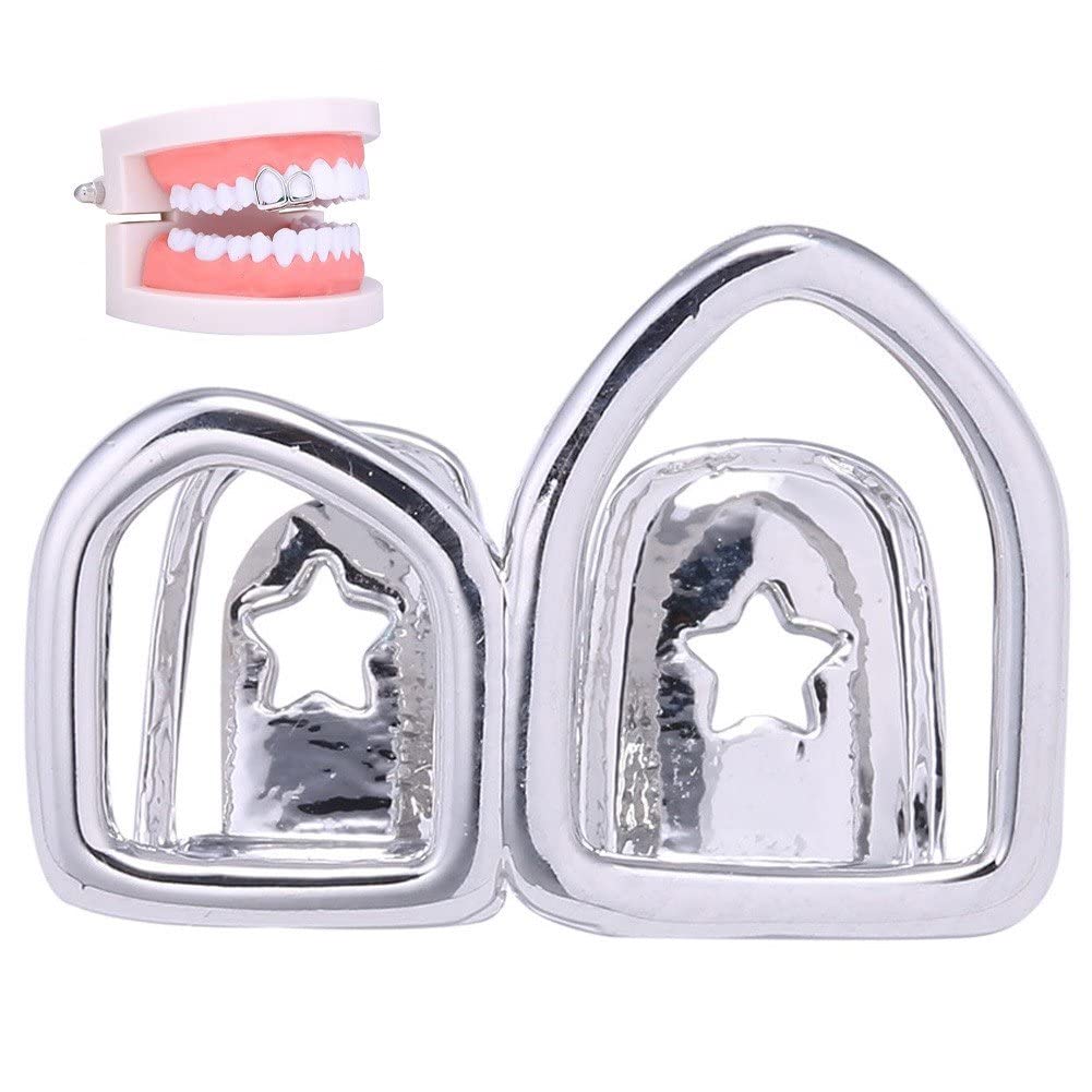 Wudaizhi Hip Hop Hohl Offene Gesicht Doppelte Zahnzähne Kappen Zähne Abdeckung Punk Grill Zahnkappe Cosplay Party Rapper Schmuck Schmuck Dekor Dekor Silber-