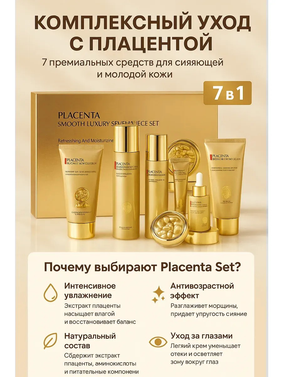 набор косметики с плацентой, уход за лицом, антивозрастной уход, капсулы для лица, крем с плацентой, увлажняющий тоник, сыворотка с плацентой, корейская косметика, антивозрастной крем, лосьон для лица, очищающая пенка, комплексный уход за кожей