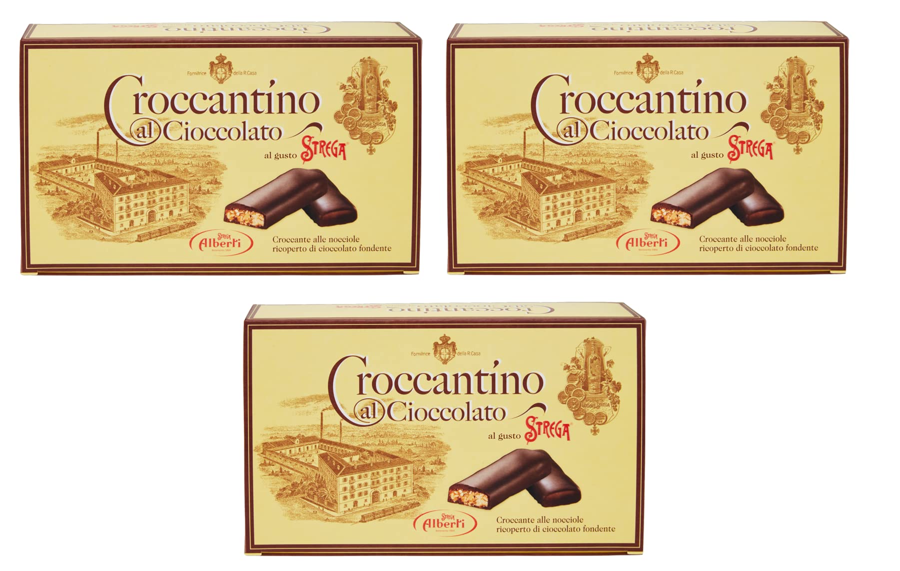 x Alberti Strega Chocolate Crunchy Strega Hazelnut Crunchy Covered in Dark Chocolate Crunchy Hazelnut Crunchy Covered in Dark Chocolate 300 g Gluten Free