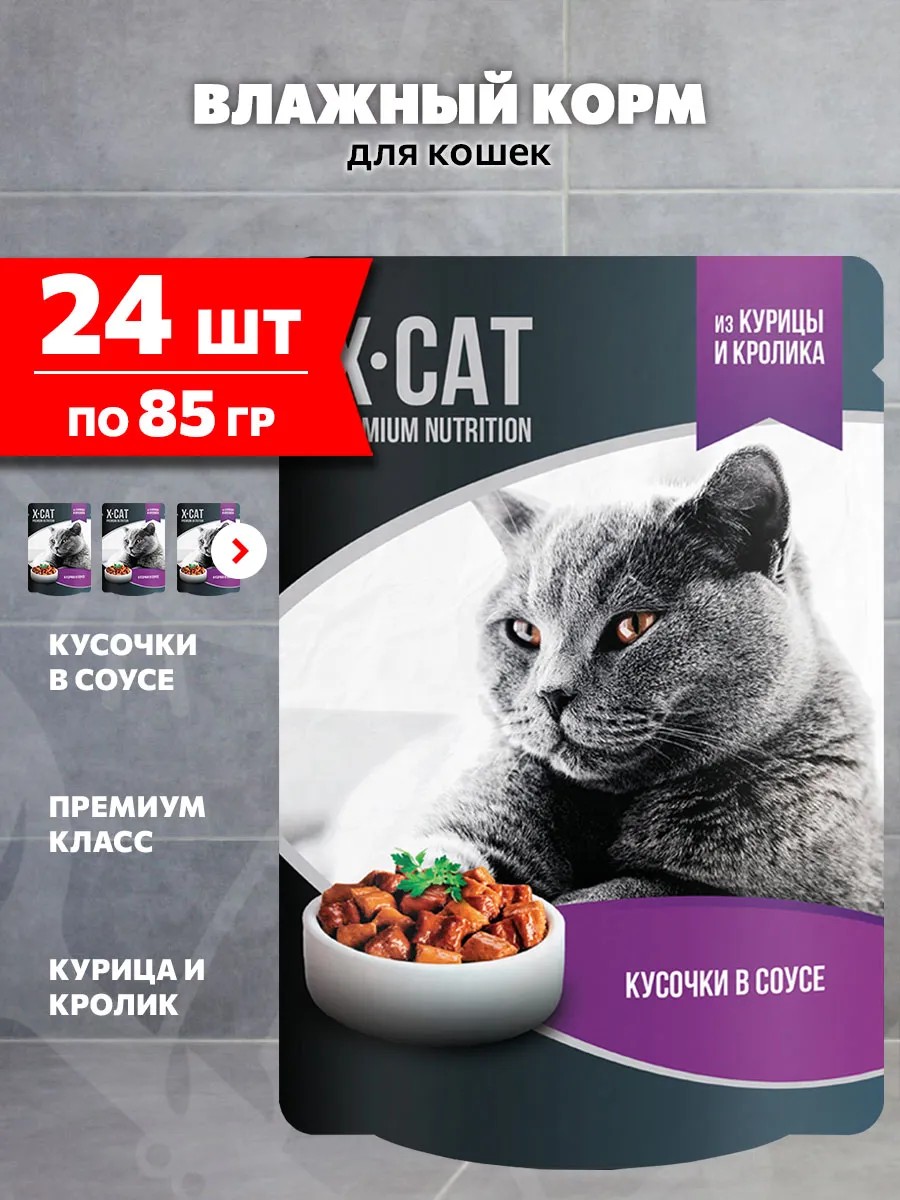 X-Cat — это высококачественный полнорационный корм для кошек влажный премиум, приготовленный из отборных ингредиентов.