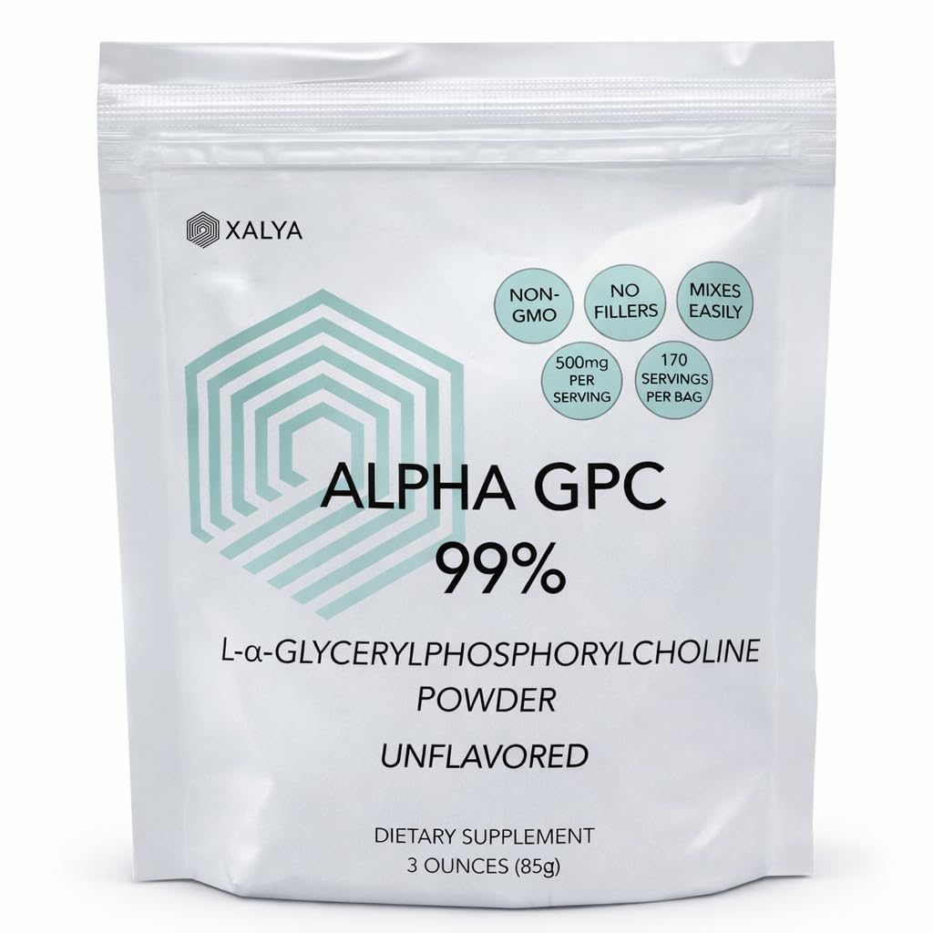 Xalya Alpha GPC Supplement Alpha GPC Powder-99% Purity (Extra Strenght) -Unflavored Natural Choline Supplement 170 Servings- 3 Ounce