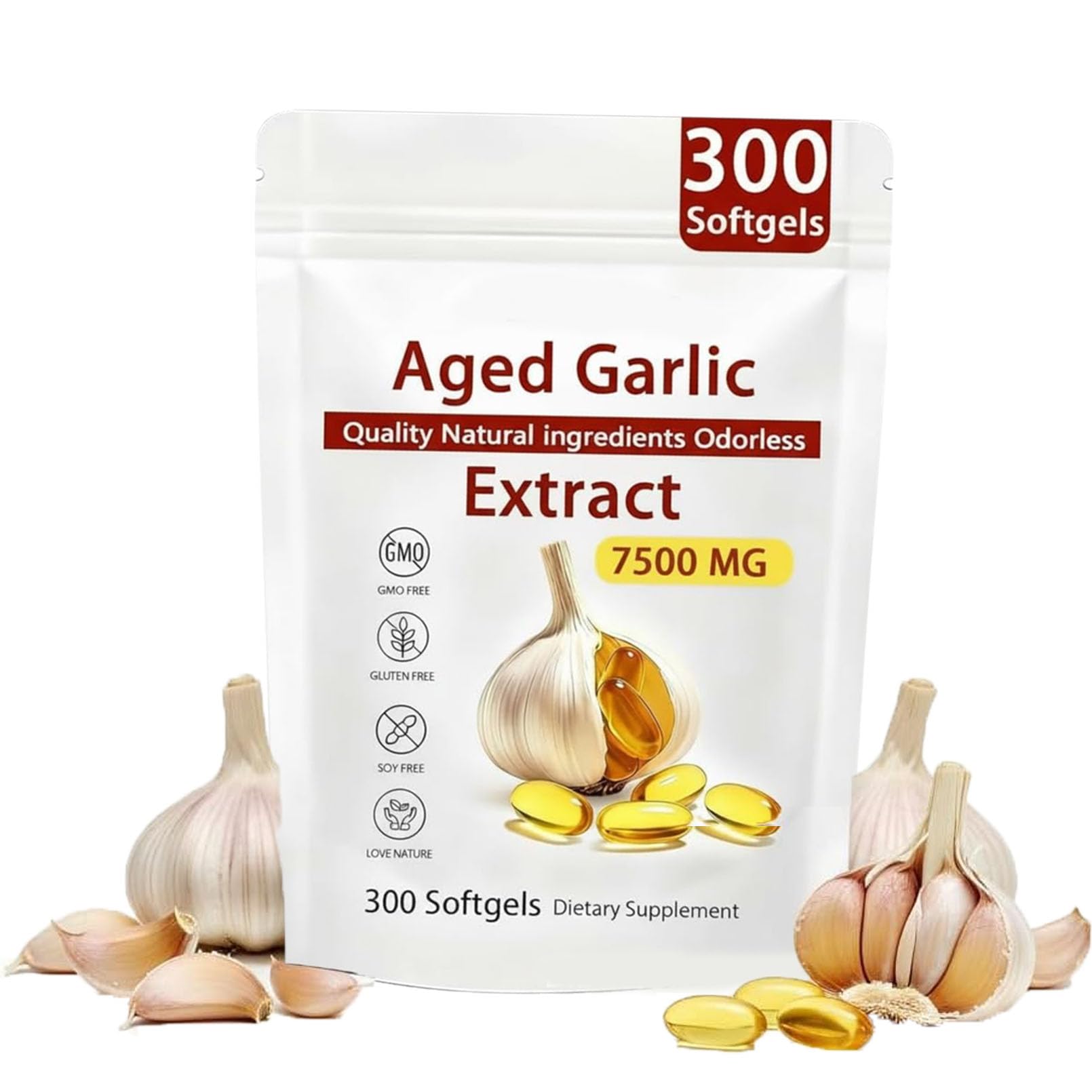Softgel capsules resist deterioration, are easy to store daily, and make consistent use effortless. Made with premium organic garlic, gluten-free, non-GMO, and free from artificial additives. Rich in unique antioxidants found only in aged garlic, supporting cardiovascular system vitality. Garlic undergoes 24 months of natural fermentation for more stable nutrients and better absorption by the body. A special process removes the garlic odor and pungency, eliminating bad breath and stomach irritation. Each capsule contains the equivalent of 7500mg of aged garlic extract, with one capsule providing the benefits of 15 regular garlic cloves.