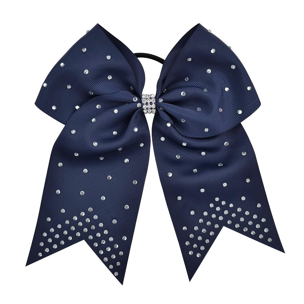 Xansema 7 Inches Rhinestone Hair Bows Elastic Hair Tie Ribbon Large Cheer Bow Ponytail Holder Hair Band for Women Girls Kids Teens (Navy)