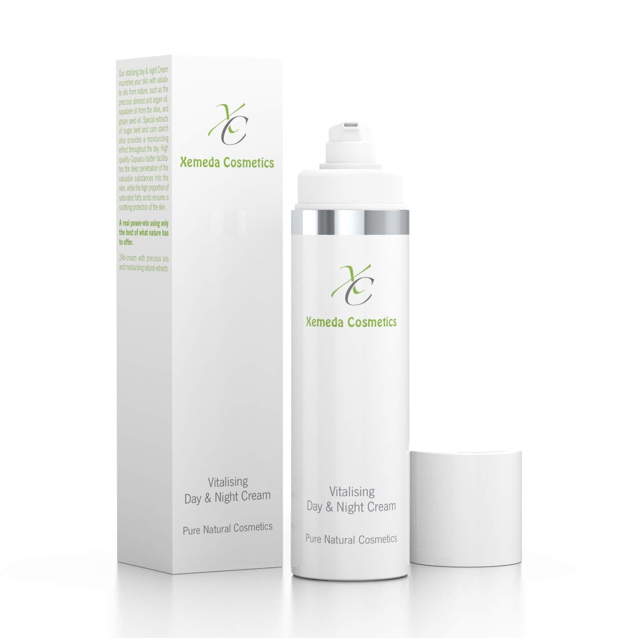 This revitalizing day and night cream nourishes and protects your skin with precious oils from nature, such as precious almond oil and argan oil, moisturizing squalane olive oil, and grapeseed oil. A true power mix of the best that nature has to offer. In addition, specially formulated natural extracts ensure a moisturizing effect throughout the day. High-quality cupuaçu butter smooths the skin and facilitates the deep penetration of natural active ingredients, while the high content of saturated fatty acids provides soothing protection for the skin. Flawless skin and a fresh complexion are the hallmarks of beauty, radiance, and youth. INDICATIONS Improves skin tone, leaves skin soft and supple, prevents the early formation of wrinkles, and protects against free radicals. INGREDIENTS Argan oil, almond oil, squalane oil, grapeseed oil, cupuaçu butter DIRECTIONS It is best to apply the moisturizer morning and evening to a cleansed face, neck, and décolleté, massaging gently. See moreThe revitalizing day and night cream is a high-quality product from Xemeda Cosmetics. Designed and manufactured in Germany for superior skincare, this cream is a pure, natural, vegan cosmetic product, free from animal testing, and meets the high safety requirements of European cosmetic legislation. Made in Germany, this pleasantly scented face cream is available in an elegant, white, double-walled airless dispenser. This design provides the best possible thermal protection against the effects of heat, 100 protection against light and oxidation, and keeps the cream free from germs, dirt, and spores. Your cream stays as fresh as the day you bought it. Despite its rich ingredients, this cream is very lightweight. It absorbs quickly and nourishes without feeling heavy. Thanks to its gentle ingredients, it is suitable for all skin types, even sensitive skin. Cellular metabolism is stimulated, and the skin's natural barrier is strengthened. Precious argan oil and almond oil, moisturizing squalane olive oil, and soothing grapeseed oil nourish your skin from every angle. They intensely hydrate, have a regenerative effect, protect against free radicals, and firm the skin. High-quality cupuaçu butter smooths the skin and facilitates the deep penetration of natural active ingredients. This invigorating day and night cream is a very gentle, well-tolerated 24-hour cream with an anti-aging effect. Thanks to the carefully selected and perfectly coordinated active ingredients, this cream is a precious treatment for your skin.Crème de jour et de nuit revitalisante - Soin de beauté aux huiles naturelles précieuses - Crème hydratante anti-rides - Cosmétique naturel 50 ml - Fabriqué en AllemagneDESCRIPTION DU PRODUIT DESCRIPTION DU PRODUIT Cette crème de jour et de nuit revitalisante nourrit et protège votre peau avec des huiles précieuses issues de la nature, telles que l'huile d'amande précieuse et l'huile d'argan, l'huile de squalane hydratante d'olive et l'huile de pépins de raisin. Un véritable Powermix du meilleur que la nature a à offrir. En outre, des extraits de la nature spécialement nourris assurent un effet hydratant tout au long de la journée. Le beurre de Cupuacu de haute qualité lisse la peau et facilite la pénétration profonde des principes actifs naturels, tandis que la teneur élevée en acides gras saturés assure une protection apaisante de la peau. Une peau impeccable et un teint frais sont le symbole de la beauté, de l'éclat et de la jeunesse. INDICATIONS Améliore la tonicité de la peau, rend la peau douce et souple, prévient la formation précoce des rides et protège contre les radicaux libres INGRÉDIENTS Huile d'argan, huile d'amande, huile de squalane, huile de pépins de raisin, beurre de cupuacu MODE D'EMPLOI Il est préférable d'appliquer le soin hydratant matin et soir sur le visage, le cou et le décolleté nettoyés en massant légèrement Voir plusLa crème de jour et de nuit revitalisante est un produit de qualité de Xemeda Cosmetics. Conçu et fabriqué en Allemagne pour des soins de la peau de qualité supérieure. La crème est un produit cosmétique naturel pur, végétalien, sans expérimentation animale et répond aux exigences élevées de sécurité de la législation européenne en matière de cosmétique - Fabriquée en Allemagne. La crème pour le visage agréablement parfumée est disponible dans un distributeur Airless à double paroi blanc élégant. Ainsi, la crème bénéficie de la meilleure protection thermique possible contre les effets de la chaleur, elle est 100 protégée contre la lumière, ainsi que contre l'oxydation due à l'oxygène et reste exempte de germes, de saleté et de spores. Votre crème reste fraîche comme au premier jour. Malgré la richesse des ingrédients, cette crème est très légère. Elle pénètre rapidement et nourrit sans alourdir. Grâce à ses ingrédients doux, elle convient à tous les types de peau, même aux peaux sensibles. Le métabolisme cellulaire est stimulé et la barrière naturelle de la peau est renforcée. Huile d'argan précieuse et huile d'amande, l'huile de squalane hydratante d'olive et l'huile de pépins de raisin apaisante nourrissent votre peau sur toute la ligne. Ils hydratent intensément, ont un effet régénérateur, protègent contre les radicaux libres et raffermissent la peau. Le beurre de cupuacu de haute qualité lisse la peau et facilite la pénétration profonde des principes actifs naturels. Cette crème de jour et de nuit vivifiante est une crème 24h très délicate et bien tolérée par la peau avec un effet anti-âge. Grâce aux principes actifs soigneusement sélectionnés et parfaitement coordonnés, la crème est un soin précieux pour votre peau.