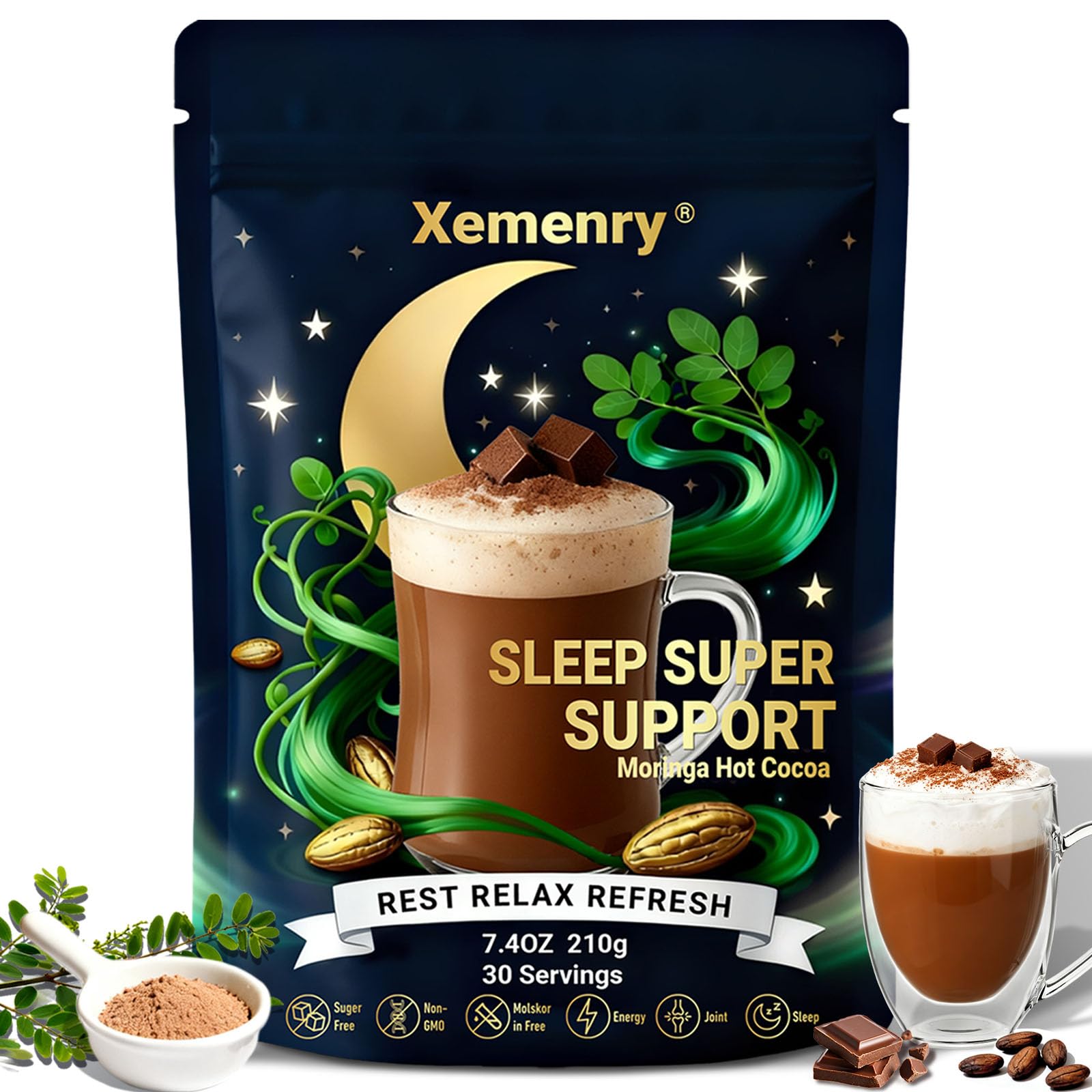 Unwind into restful slumber with Xemenry Sleep Super Support Moringa Hot Cocoa - cozy evening sips of our cocoa leading to deep, rejuvenating sleep