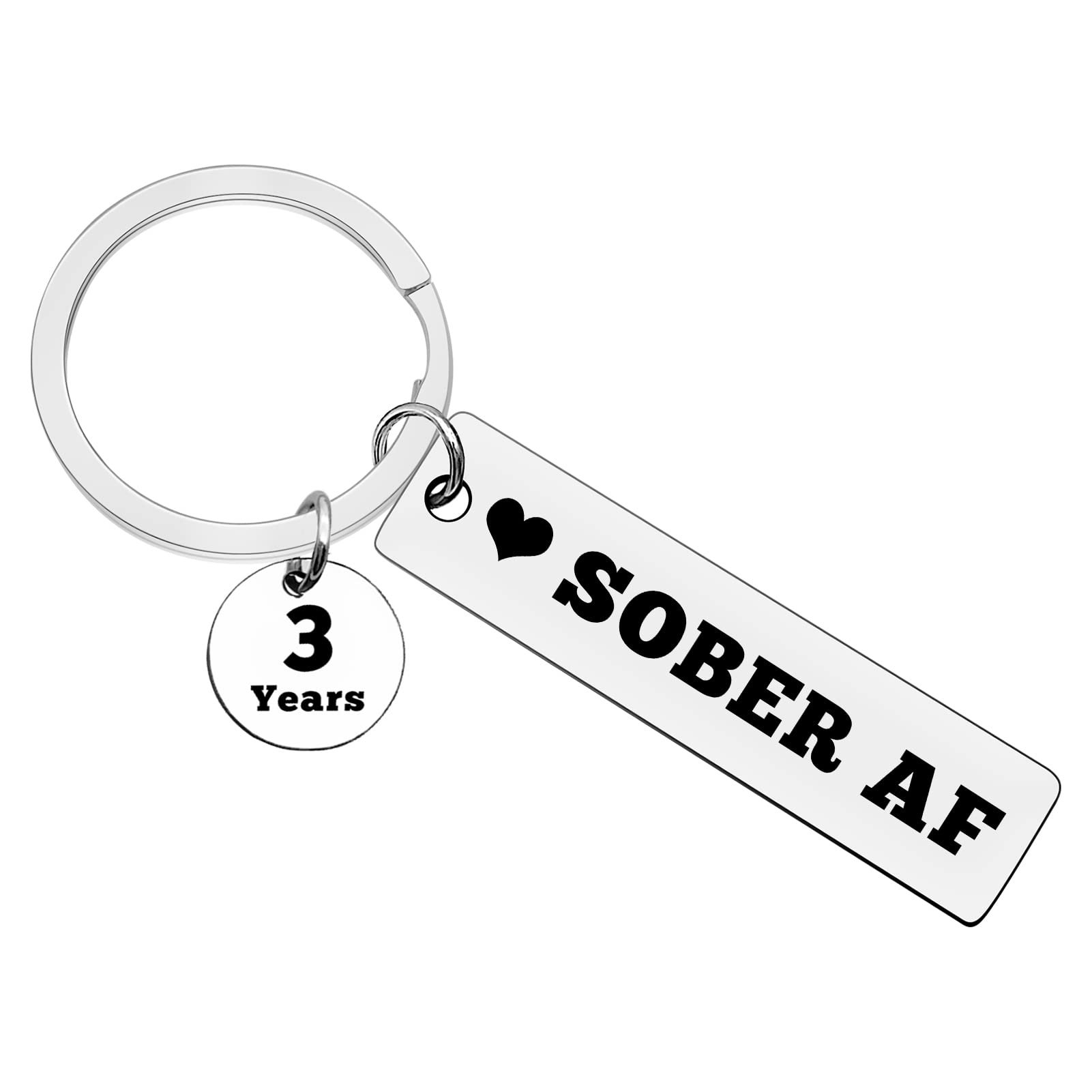 3 Year Sobriety Keychain The sobriety keychain makes the perfect gift for someone celebrating their 3 year sobriety anniversary or someone that is in recovery. AA gifts, Christian recovery gift, Alcoholics anonymous gift, AA keychain, Gift for recovery anniversary. 3 Year Sobriety Gifts for Men Women Recovery is a difficult period that tests one's strength and grit. It's important to let our lover,friends,coworker and family know that we support them. And it makes a great reminder that life will get better but you just have to take little steps along the way. AA Recovery Gift Gift for recovering addicts and alcoholics. It will bring then great comfort and will be a reminder they can keep close to them wherever they go. Nice gift for Birthday,Christmas,Valentines day, Fathers Day, Mothers day,Thanksgiving Day,New Year or celebrate a sobriety anniversary with him/her or whenever just because they need it. Package Included 1 x 3 Year Sobriety Keychain 1 x Free Nice Velvet Bag Our Friendly Customer Service If you have any problems with our items or services, please feel free to contact us first. We will do our best to solve any problem,and provide you with the best customer services.Package: The Sobriety Keychain is well packaged with a specially designed velvet pouch with high quality, is ready to be given as a gift. Keychain Size: 12*50 mm(0.47*1.9 inch). Material: Stainless steel, it is lead free and nickel free. Stainless Steel is hypo allergenic, it doesn’t rust, change color or tarnish. Alcoholics Anonymous Gifts: This gift is for those who have been addicted or are recovering to bless them.It will become an inspirational gift. Christmas gift, birthday gift,fathers day gift, mothers day gift, anniversary gift,thanksgiving gift, new year gift, etc. Addiction Recovery Gift: The keychain would make an thoughtful token to carry with. This supportive gift is a beautiful way to show your love to your loved, friends, family member. And it makes a great reminder that life will get better but you just have to take little steps along the way. 3 Year Sobriety Gifts: Engraved with “SOBER AF” with “3 Years” charm is an great way to help your loved celebrate their 3 year sobriety. It tells them you are with them in their journey so they can feel confident to continue moving forward.