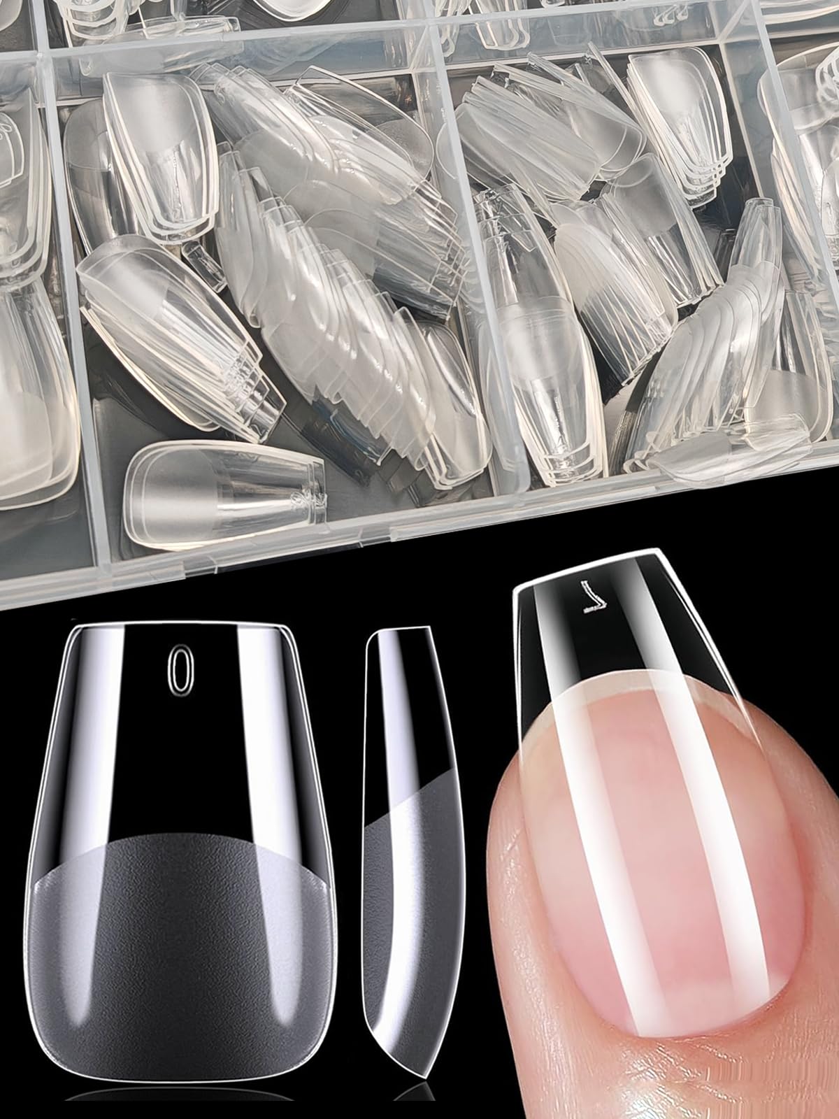 Wide Application: Our American-style nail tips are perfect for beginners, professionals, nail salons, and DIY nail art at home. Great for birthdays, parties, weddings, Christmas, and other occasions, they make the perfect gift for your girlfriend, wife, or mother. Easy to Use: Our ballerina gel nail tips are designed with a semi-lifting backing, allowing for a secure hold and quick nail extension without spending extra time buffing the base of your false nails and tips. You'll be able to exclaim, "Nail art has never been so fast!" High-Quality Material: Our professional ballerina-style American nail tips are made of high-quality PMMA, which is lightweight, malleable, and durable. You can bend them as you like without leaving white marks or breakage. THIN AND STRONG: Our short ballerina American-style nail tips are thin and flexible at the base, fitting snugly and comfortably like your own nails, while the tips are thickened and strong to make them unbreakable. They're also incredibly easy to trim you can adjust the length and shape exactly to your liking. Multiple Sizes: 600 pieces of clear short ballerina nail tips are neatly packaged in a storage box. The 12 different sizes fit most people's nails. Each piece is numbered (0-11), making it easy to find the perfect short ballerina nail tips for you.XIAOHEBAN 600Pcs Capsule Americaine Ongle Court Ballerine- 12 Tailles, Faux Ongles Capsule Ongle Gel x Pose Americaine Coffin Court Pour DéButant De Manucure Et Diy Nail Art at Home - Transparent Ballerine SWide Application:Nos capsule ongle americaine sont parfaits pour les débutants, les professionnels, les salons de manucure, le bricolage de l'art des ongles à la maison. Grand pour les anniversaires, les fêtes, les mariages, Noël et d'autres occasions, c'est le cadeau parfait pour votre petite amie, femme, maman. EASY TO USE:Nos capsules ongles gel ballerine sont conçus avec un semi-décollement, ce qui vous permet d'obtenir une bonne adhérence pour une extension d'ongle rapide sans passer plus de temps à polir le bas de vos faux ongles et capsules. Vous pourrez vous exclamer ' L'art de l'ongle n'a jamais été aussi rapide '. Matériau de haute qualité:Nos capsules americaine ongles ballerine professionnel sont fabriqués en PMMA de haute qualité, qui est léger, malléable et durable. Vous pouvez le plier comme vous le souhaitez sans laisser de marques blanches ou de cassures. FIN ET FORT:Nos ongle pose americaine court ballerine sont fins et flexibles à la base, très ajustés et confortables comme vos propres ongles, et les pointes sont épaissies et solides pour les rendre incassables. Et c'est un jeu d'enfant de les couper, vous pouvez ajuster la longueur et la forme exactement à votre goût. Multiples tailles:600 pièces de capsule ongle ballerine courte transparentes sont emballés de manière ordonnée dans une boîte de rangement, 12 tailles différentes conviennent aux ongles de la plupart des gens. Chaque pièce a un numéro (0-11), vous pouvez facilement trouver les faux ongles capsule court ballerine qui vous conviennent.