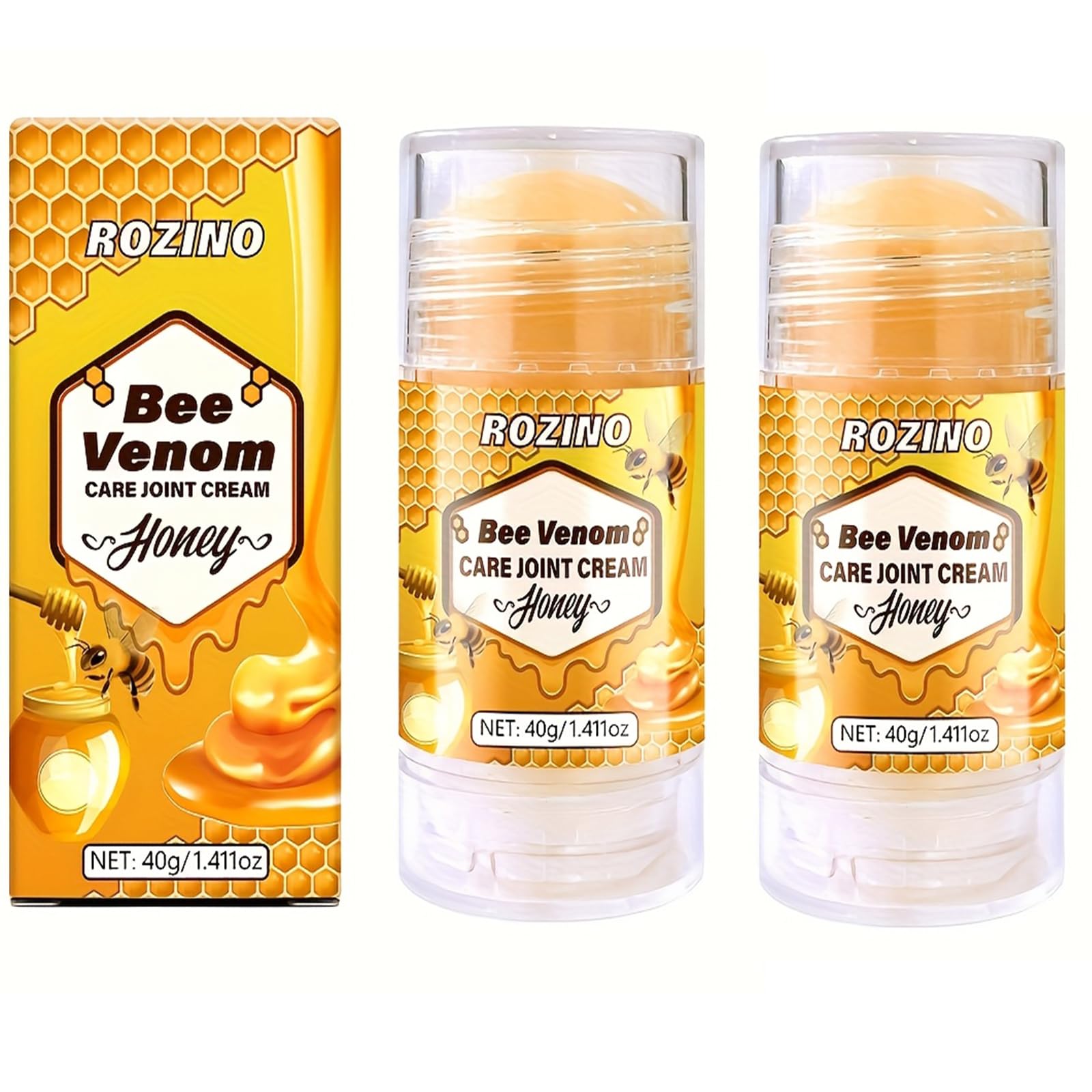 Quality Care for Joints:Created to provide quality care for your joints. You can trust in the effectiveness of this carefully formulated cream for your joint needs. Lightweight Non - Greasy:The cream has a lightweight texture that doesn't leave a greasy feeling on your skin. You can apply it and go about your day without any stickiness or discomfort. Supports Joint Comfort:Specially made to help maintain joint comfort. Whether your joints have daily wear and tear or you just need extra support, this cream is here to help. Convenient Application:It comes in a 40g (1.411oz) container that's easy to use. The design lets you apply the cream smoothly and precisely to the areas that need care whenever you want. Natural Bee Venom Honey Formula:This joint cream is made with natural bee venom and honey. It uses nature's benefits to gently care for your joints and help keep them comfortable.