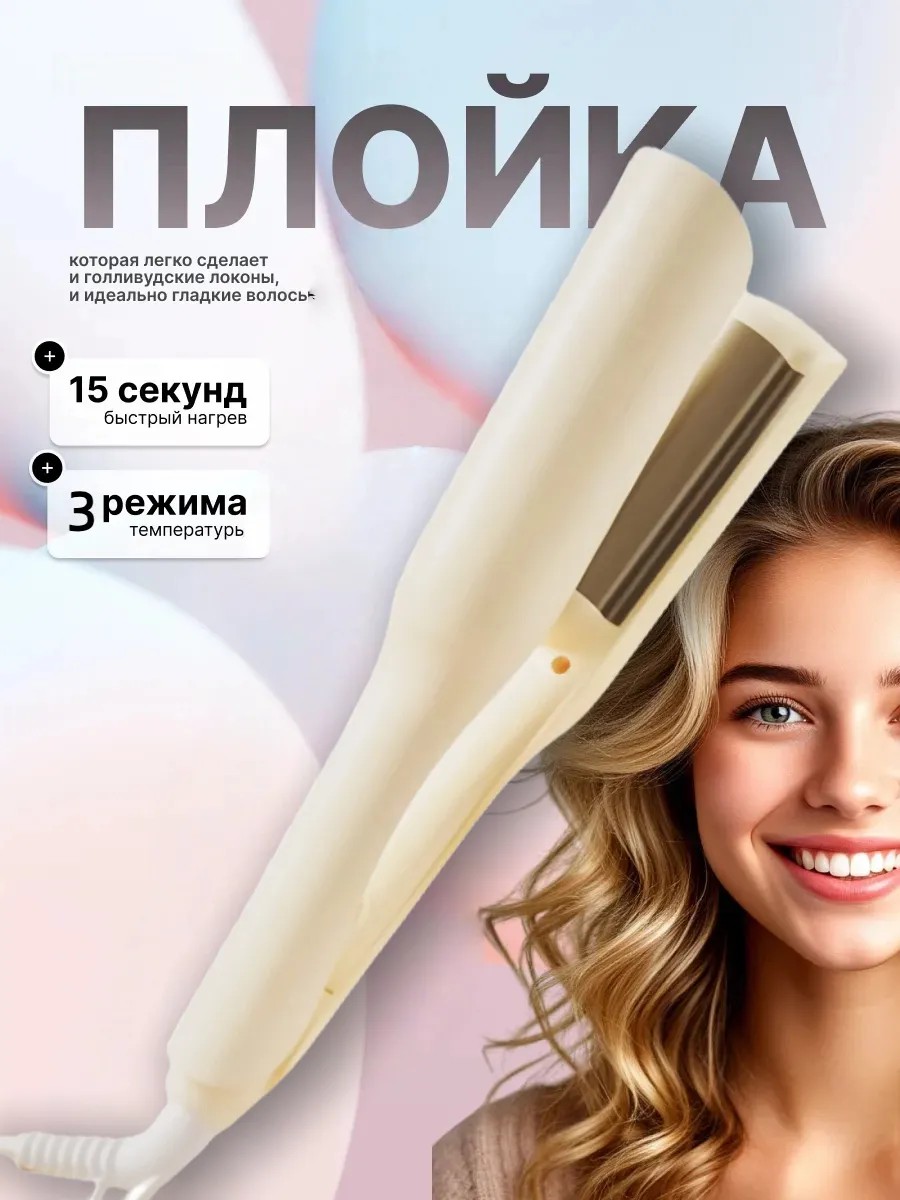 Плойка волна для завивки волос это настоящая находка для любительниц быстрой укладки! Трехволновая плойка позволяет создавать укладку с локонами разной степени упругости. Прибор афрощипцы для укладки длинных и коротких кучерявых hair нагреваются за 30 секунд, времени на прическу будет уходить ещё меньше. Утюжок для создания волн имеет оптимальный нагрев, который не навредит Вашим волосам и придаст им обьем, создаст эффект кудряшек. Профессиональный professional стайлер для завивки равномерно нагревается за счет керамического покрытия. Это позволит создать кудри одинаковой толщины и объема. Профессиональные щипцы для волн безопасны в использовании. На крайней части нагревательных элементов электрощипцов для волос находятся защитные наконечники, которые помогут избежать ожогов, в случае прикосновения к афро стайлеру из керамики. Тройная плойка волна станет прекрасным подарком для любительниц экспериментировать с прическами для девушек, подруге, любимой, жене на 8 марта, день рождения, на 14 февраля. К каждому заказу приятный сюрприз. Волновая плойка стайлер для завивки волос, плойка гофре, гафре, пятиволновая плойка поможет завить ваши волосы. Они будут волнистые и красивые, волны можно сделать крупными, средними или мелкими.