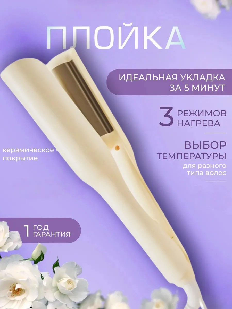 Плойка волна для завивки волос это настоящая находка для любительниц быстрой укладки! Трехволновая плойка позволяет создавать укладку с локонами разной степени упругости. Прибор афрощипцы для укладки длинных и коротких кучерявых hair нагреваются за 30 секунд, времени на прическу будет уходить ещё меньше. Утюжок для создания волн имеет оптимальный нагрев, который не навредит Вашим волосам и придаст им обьем, создаст эффект кудряшек. Профессиональный professional стайлер для завивки равномерно нагревается за счет керамического покрытия. Это позволит создать кудри одинаковой толщины и объема. Профессиональные щипцы для волн безопасны в использовании. На крайней части нагревательных элементов электрощипцов для волос находятся защитные наконечники, которые помогут избежать ожогов, в случае прикосновения к афро стайлеру из керамики. Тройная плойка волна станет прекрасным подарком для любительниц экспериментировать с прическами для девушек, подруге, любимой, жене на 8 марта, день рождения, на 14 февраля. К каждому заказу приятный сюрприз. Волновая плойка стайлер для завивки волос, плойка гофре, гафре, пятиволновая плойка поможет завить ваши волосы. Они будут волнистые и красивые, волны можно сделать крупными, средними или мелкими.