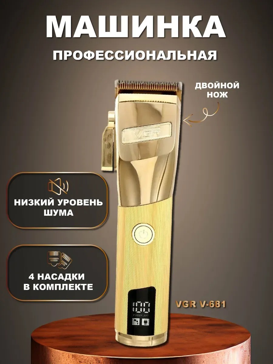 Профессиональная беспроводная машинка для стрижки волос VGR V-681. Профессиональная машинка для стрижки волос VGR V 681. Мощный роторный двигатель с увеличенным крутящим моментом. Машинка имеет профессиональные ножи из нержавеющей стали. Этот материал отличается высокой твердостью и долговечностью, что позволяет машинке справляться с самыми густыми и жесткими волосами. Машинка оснащена мощным аккумулятором и LED-дисплеем с индикатором регулируемой мощности и уровня заряда. Ножи: нержавеющая стали Регулировка ножа 0.8-2мм.