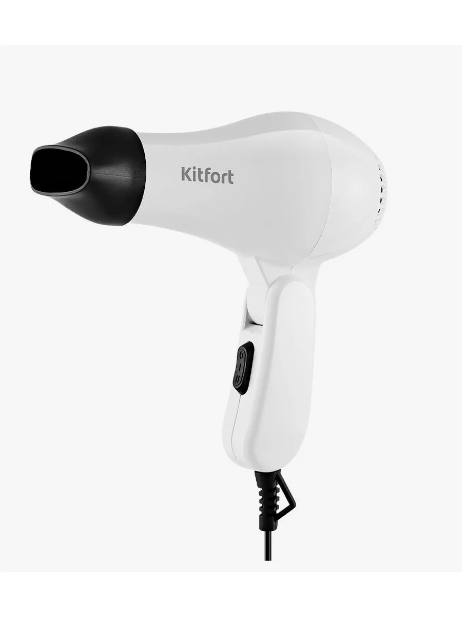 With the Kitfort KT-3242 hair dryer, you can quickly dry your hair and create a beautiful style. This hair dryer produces a targeted airflow, making drying your hair simple and convenient. It features two airflow speeds. The body is made of plastic, and the ergonomic handle fits comfortably in your hand. The KT-3242 is lightweight and features a folding handle, making it compact and easy to store. A concentrator nozzle is included. This model is convenient to take with you on trips, travel, and business trips. A loop allows you to store the hair dryer on a hook.