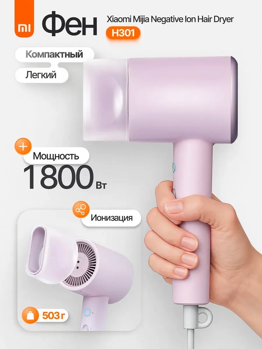 The Xiaomi Mijia H301 hair dryer is a powerful, compact, and stylish electric appliance every woman needs. This model, with a concentrator attachment, features overheating protection and a cool-shot mode.