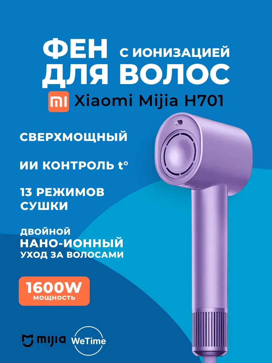 Фен для волос Xiaomi Mijia Hair Dryer H701 - профессиональный фен сочетающий в себе высокую мощность, скорость и функции ии с бережным уходом за вашими волосами.