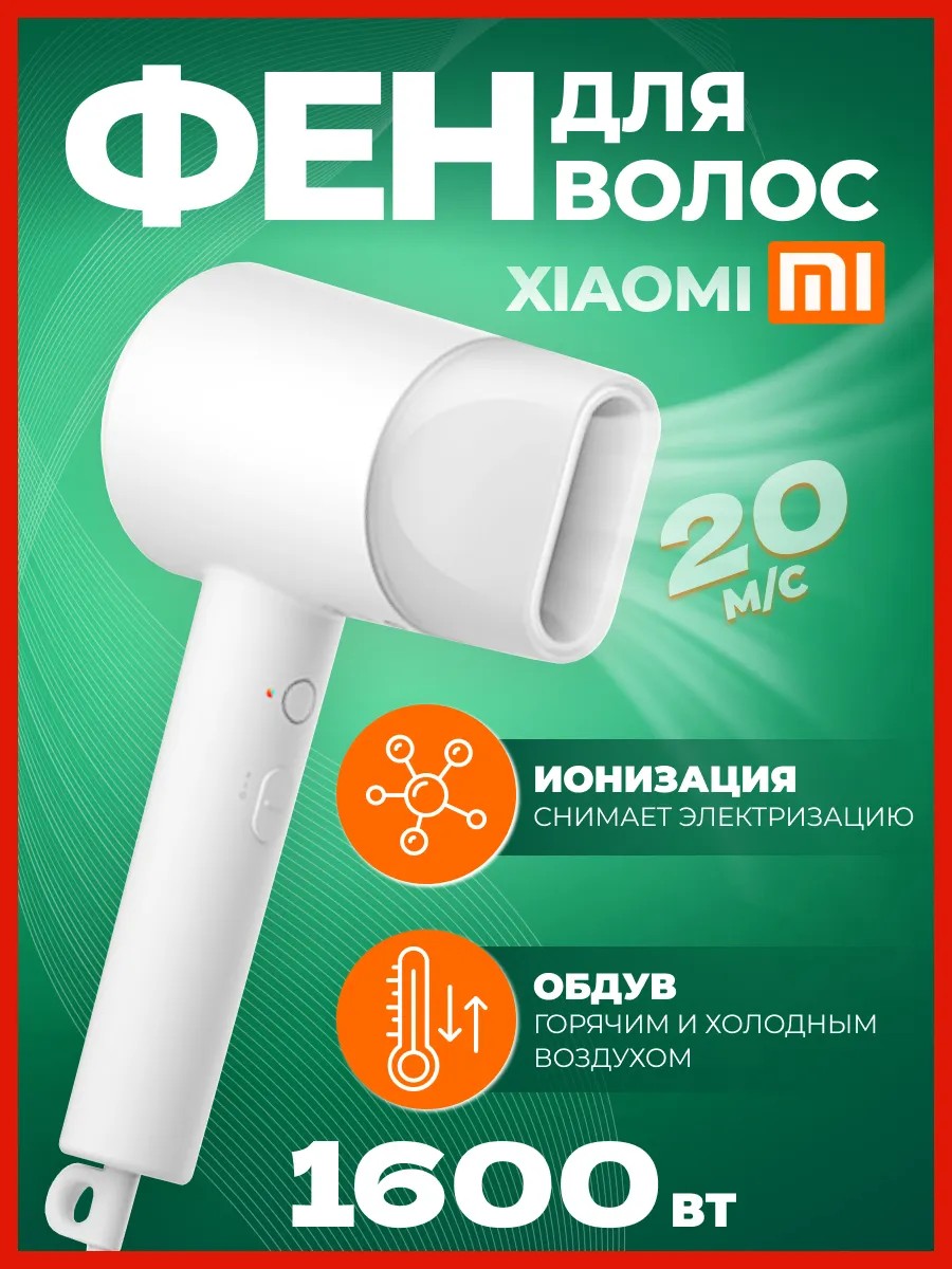 Фен для сушки и укладки волос от Xiaomi H300 - это мощное современное устройство небольших размеров, впечатляющее своей эффективностью. Встроенный турбодвигатель мощностью 1600 Вт в совокупности с 7 лопастями особой загнутой формы обеспечивают стабильный быстрый поток воздуха - 20 м/с. Благодаря чему процесс испарения влаги происходит быстрее на холодном обдуве без прибегания к высоким температурным режимам. Есть возможность установить постоянную температуру в 57℃. Встроенный датчик в режиме реального времени отслеживает этот показатель и препятствует перегреву и пересушиванию. Стайлер предлагает 2 скорости работы на выбор. Кроме того, hair dryer mi оснащен функцией ионизации, которая действительно помогает избавиться от статического напряжения, придает блеск и гладкость волоскам, делает локоны более послушными. Такая компактная модель окажется достойной заменой профессиональным салонным аналогам. Незаменима для использования дома или в поездке в качестве маленького дорожного помощника. При этом она оснащена удобной эргономичной ручкой, что выгодно отличает ее от складных вариантов. Длинный шнур 1,7 м и специальная петля для хранения на крючке также выделяют этот фен-ионизатор. Гаджет представлен в белом цвете, имеет лаконичный универсальный дизайн, подойдет и для женщин, и для мужчин. В комплекте к фену идет 1 насадка концентратор и руководство пользователя. Это хороший практичный подарок для девушки или подруги.