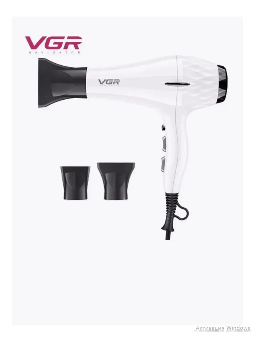 Фен для волос профессиональный VGR V-413 белый. Отличная модель, которая подойдет как для бытового использования, так и для профессионального. Характеристики: Мощность 2200 Вт / Длина шнура 3 метра / 3 температурных режима / 2 скорости подачи воздуха / ионизация воздуха / кнопка подачи холодного воздуха.Фен зарекомендовал себя как легкий, удобный, компактный, практически бесшумный инструмент как среди профессионалов индустрии красоты, так и среди пользователей в повседневных домашних условиях.Фен оснащен мощным AC-мотором, несколькими уровнями скорости и ионизацией: то, что необходимо, чтобы сушка волос была максимально бережной и быстрой!