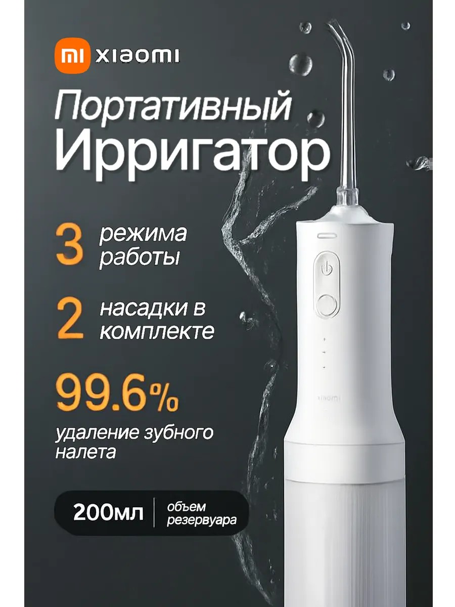 | Комплектация | ирригатор xiaomi; насадки; Кабель питания Type-C; документация |