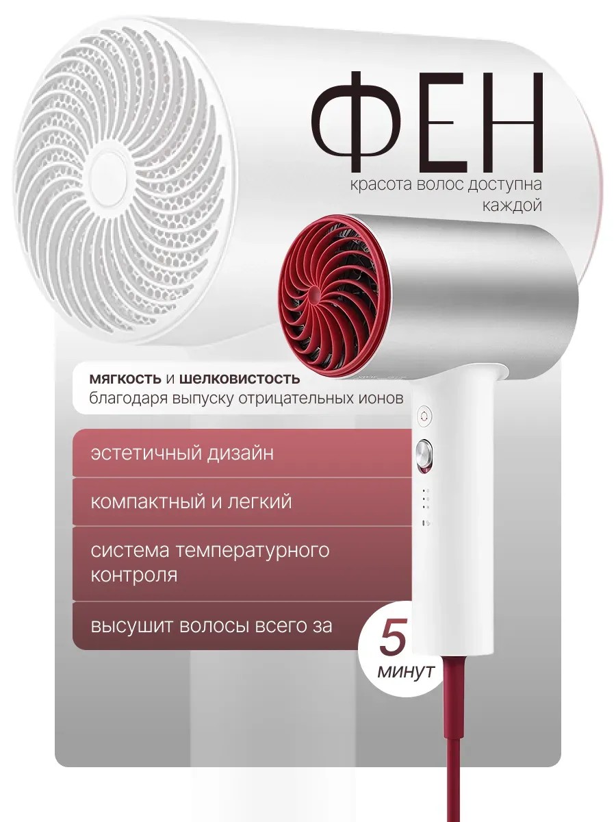 | Модель | Negative Ionic Quick-drying Hairdryer H5 |