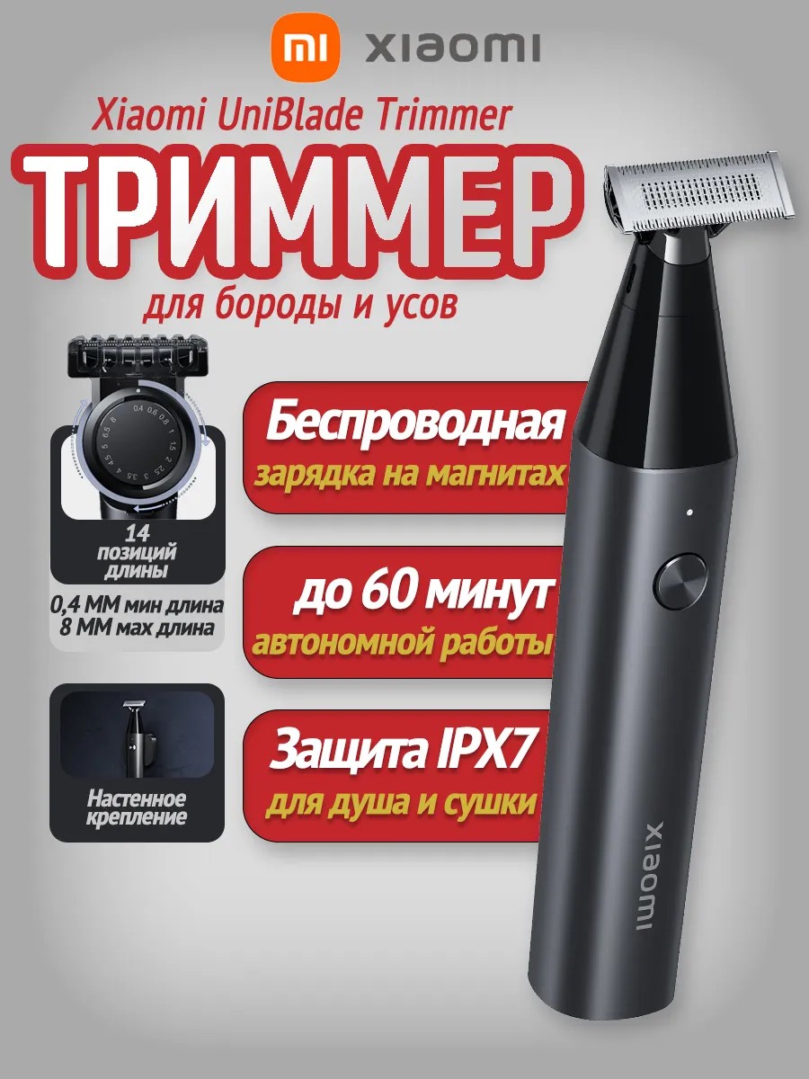 | Комплектация | Триммер Xiaomi UniBlade Trimmer X300; Регулируемая насадка-гребень для бороды; настенное крепление; зарядная док-станция; руководство пользователя; гарантийное уведомление; Руководство по началу эксплуатации |