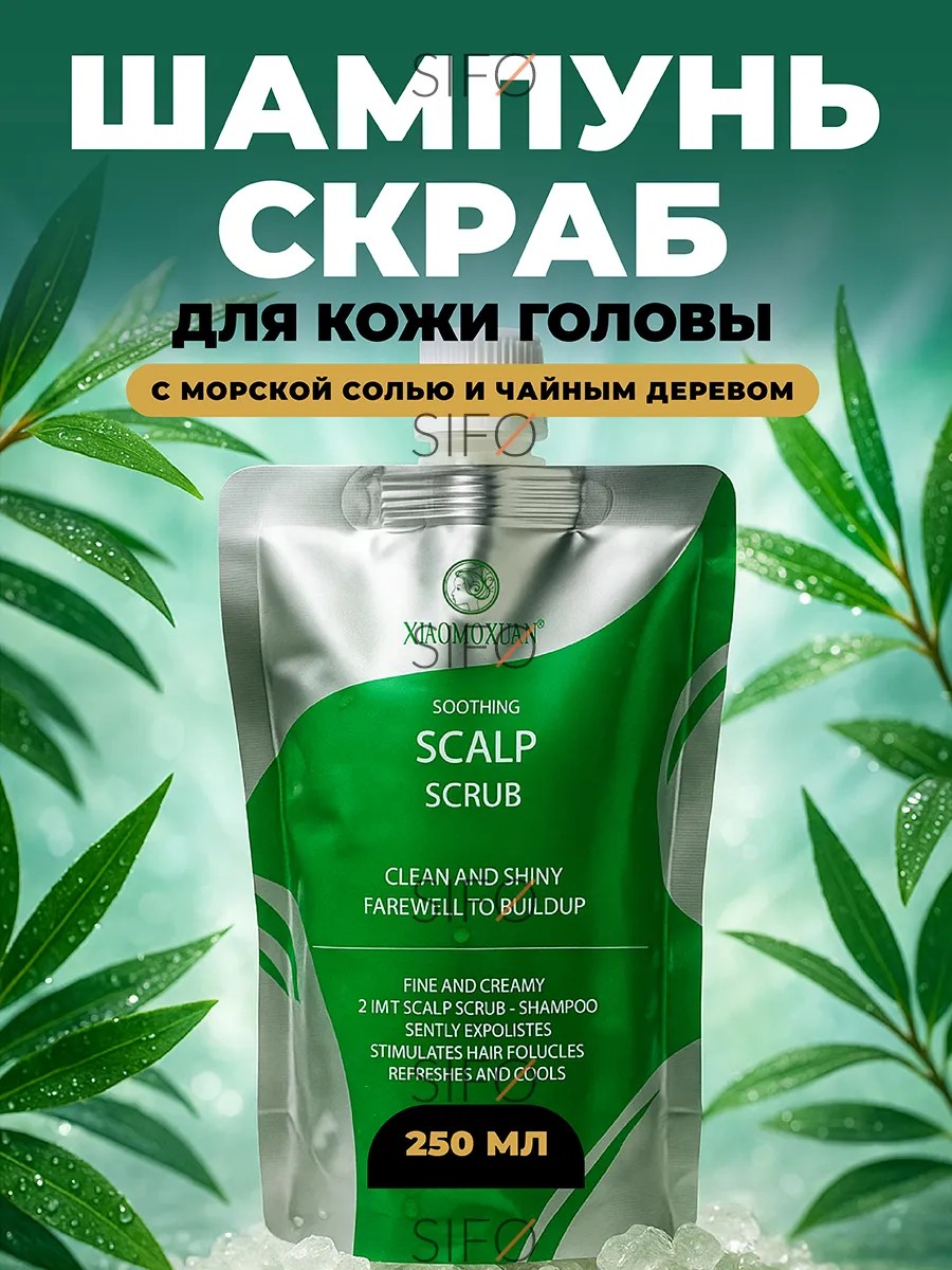 Скраб - Шампунь XIAOMOXUAN для домашнего ухода эффективно очищает эпидермис от ороговевших частиц. Увлажняет кожу головы. Скраб на основе природных компонентов и морской соли бережно ухаживает за кожей головы. Специальные скрабирующие микрочастицы обеспечивают массаж и глубокое очищение кожи от лишнего себума и средств для укладки, активизируют кровообращение и клеточное дыхание кожи