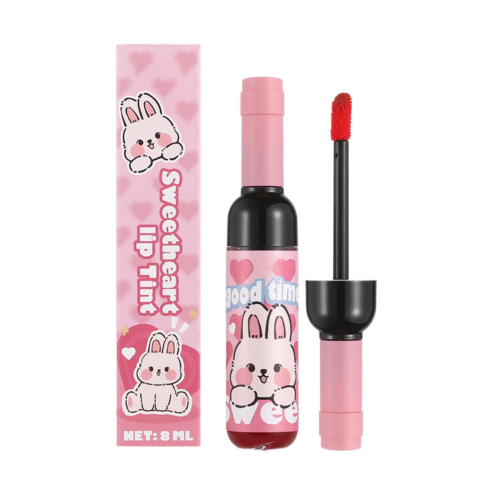 All-day wear: Long-lasting, smudge-proof color, perfect for social events and everyday wear without the need for reapplication. Innovative design: Unique red wine bottle shape that blends artistic beauty with practical functionality. Offers a sophisticated aesthetic while ensuring easy and precise application for flawless lip makeup every day. Hydration-infused matte: Achieve a perfect matte finish with built-in nourishing components. Provides long-lasting wear while maintaining an exceptionally soft feel on the lips. Fun and gift-giving: Cartoon design adds a playful touch to every use. An ideal gift solution for sharing special moments at celebrations or personal occasions, offering a suitable alternative to lipstick. Dual effect: Combine the intense color of a lipstick and the shine of a gloss in one product for a multifunctional application that suits a variety of makeup styles.