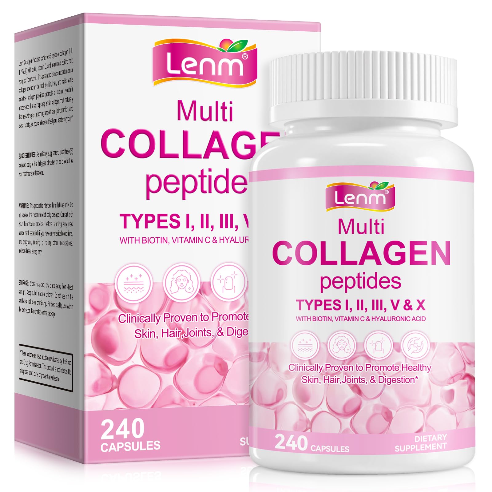 XINSZLIN Multi Collagen Peptides Capsules with Biotin Vitamin C & Hyaluronic Acid 5 Types Collagen I II III V X for Skin Hair Nails & Joint Support 240 Capsules