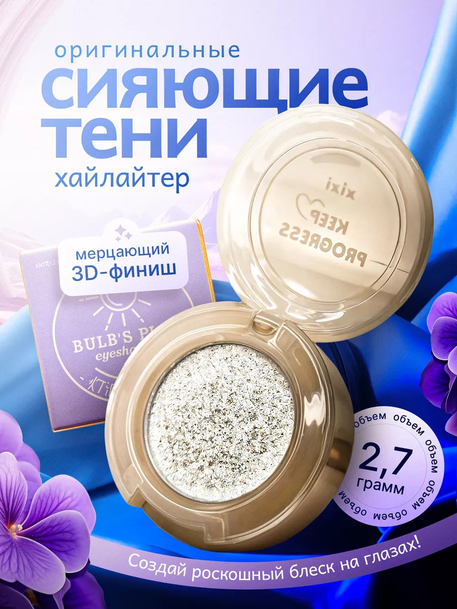 Сияющие тени для век спаркл Xixi BULBS PLAN EYESHADOW (Sparkle) - это пигментированная пудровая текстура — легкая, почти воздушная, совершенно невесомая и неощутимая Палитра оттенков позволяет создавать макияж в совершенно разных стилях . При помощи дневного мейкапа можно аккуратно подчеркнуть свои достоинства, сделать взгляд более выразительным. Вечерний макияж позволяет использовать более яркие цвета для создания насыщенного образа. Тени отлично ложатся на веко, обеспечивая хорошую растушевку. Независимо от выбранного цвета, макияж будет стойким и красивым. Спарклы можно наносить пальчиком на веко, а так же на подложку. Под тени для век голографики необходима база под макияж или подготовить веко: нанести стойкий консилер и просушить пудрой. Хайлайтер для лица дарит эффект естественного сияния, свежий и отдохнувший вид. Шиммер для лица дает блистание на солнце. Идеальный финиш в высветлении отдельных участков. Идеальные тени однушки для молодежного и сверкающего макияжа на каждый день. Тени хамелеоны дуохромы это роскошное, легкое мерцающее свечение, придающее коже солнечное сияние. Крошечные сверкающие частицы глиттер ложатся на кожу вуалью и дарят деликатное мерцание. Деликатно освещает кожу сиянием и подчеркивает загар. Дарит мерцающий блеск. Мы рекомендуем наносить блестки для глаз на выпуклые участки тела для подчеркивания рельефа. Мерцающее сияние создаст настроение праздника. прекрасно подходит в качестве подарка. Сияющие тени идеально подходят для создания праздничного макияжа.Идеальные тени однушки для молодежного и сверкающего макияжа на каждый день!