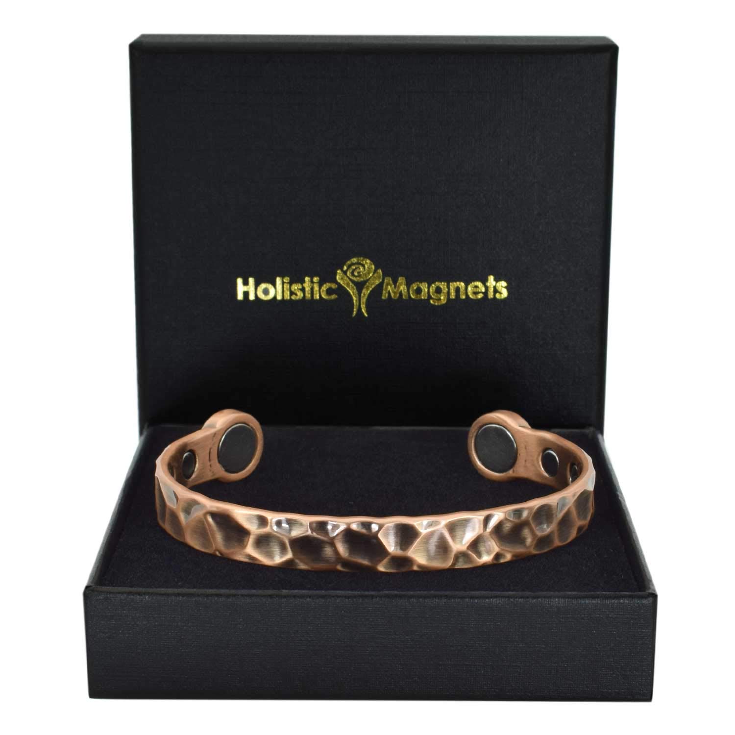 XL Mens Pure Copper Magnetic Bracelet Copper Bangle Holistic Magnetic Band with 6 Powerful Neodymium Magnets Unisex Adjustable Hammered Cuff-HM (XL: Wrist 22 24cm/8.6 9.5 )