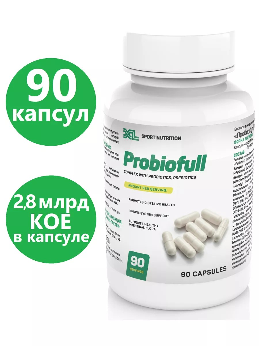 В упаковке пробиотики для взрослых находится 90 капсул, в каждой из которых находится 2,8 млрд полезных для пищеварения бактерий. Рекомендуется принимать по одной капсуле XL Probiofull 1-3 раза в день.