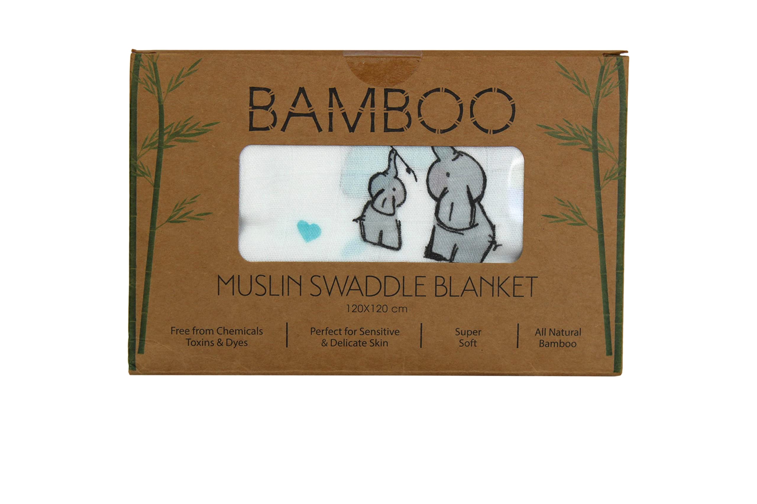 XL Unisex Premium Bamboo Baby Muslin Swaddle Blanket/Wrap - 120x120cm (47x47in) - 70% Bamboo / 30% Cotton : Lightweight Breathable & Super Soft : Suitable for Newborn Baby Boys or Girls (Elephants)