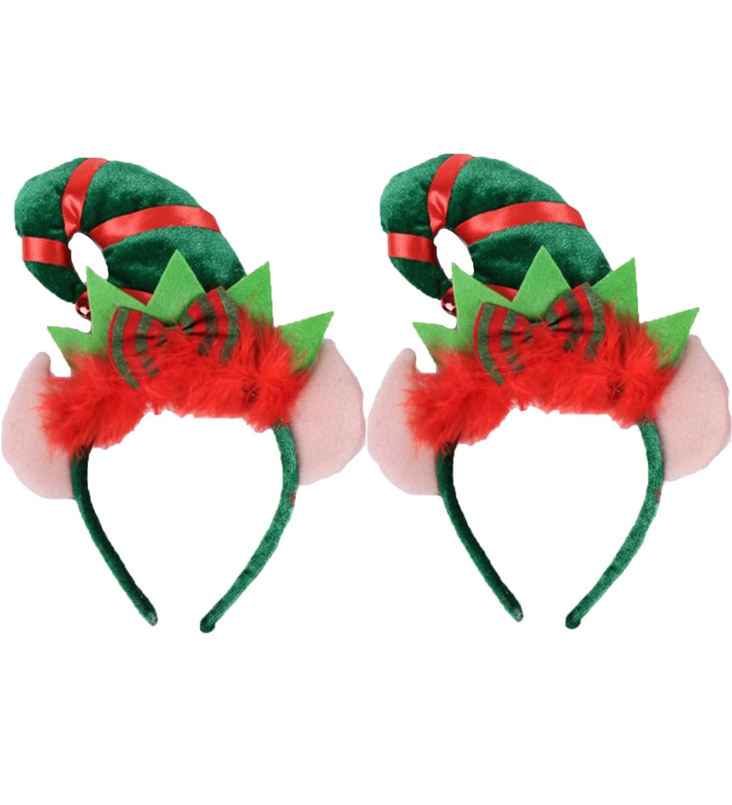 Christmas Elf Hat Headband Elf Hairband with Ears Elf Fancy Dress Accessories Xmas Party Decoration Cute Elf Headwear for Christmas Masquerade Feature: - You will receive two elf hat ear headbands with interesting designs, and the red and green color scheme is perfect for Christmas use. - This product is based on an elf, with a cute elf hat paired with red fluff and a bow, making it even more fun. - This headband can be a great decoration for you. Specification: Material: Cloth Color: Green Red Size: one size Package Contents: 2* Christmas Elf Hat Headband