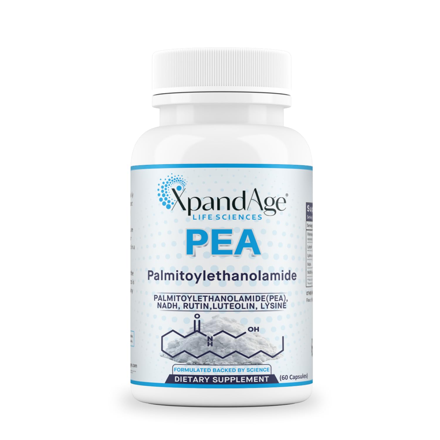 XpandAge Life Sciences Palmitoylethanolamide(micronized Pea) with Luteolin Nadh Rutin and Lysine for Immunity Nervous* System* Support and Overall Wellness.60 Vegetable Capsules Made in USA.
