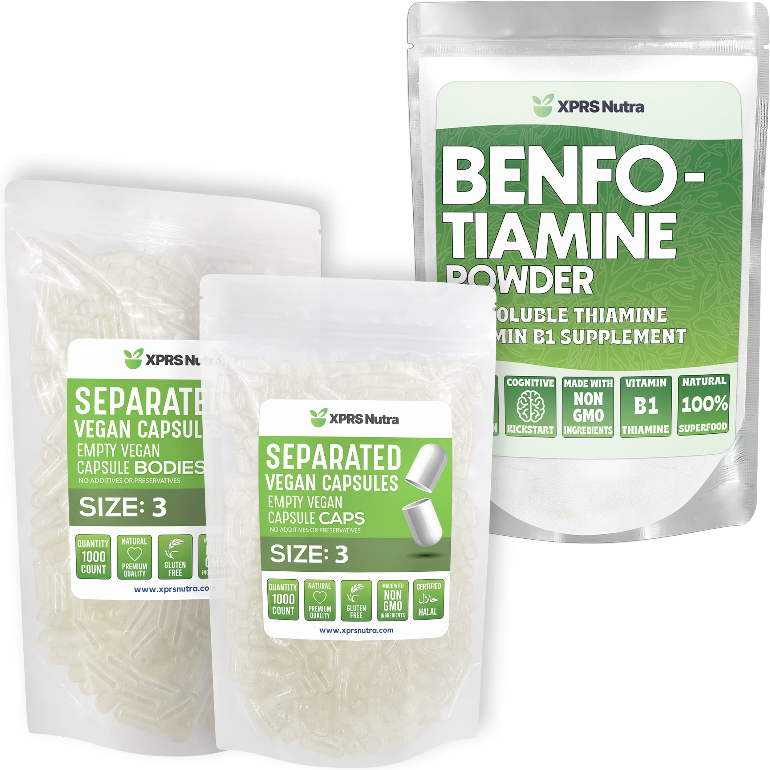 XPRS Nutra Separated Size 3 Capsules (1000 Count) with Benfotiamine Powder (1 Ounce) Bundle