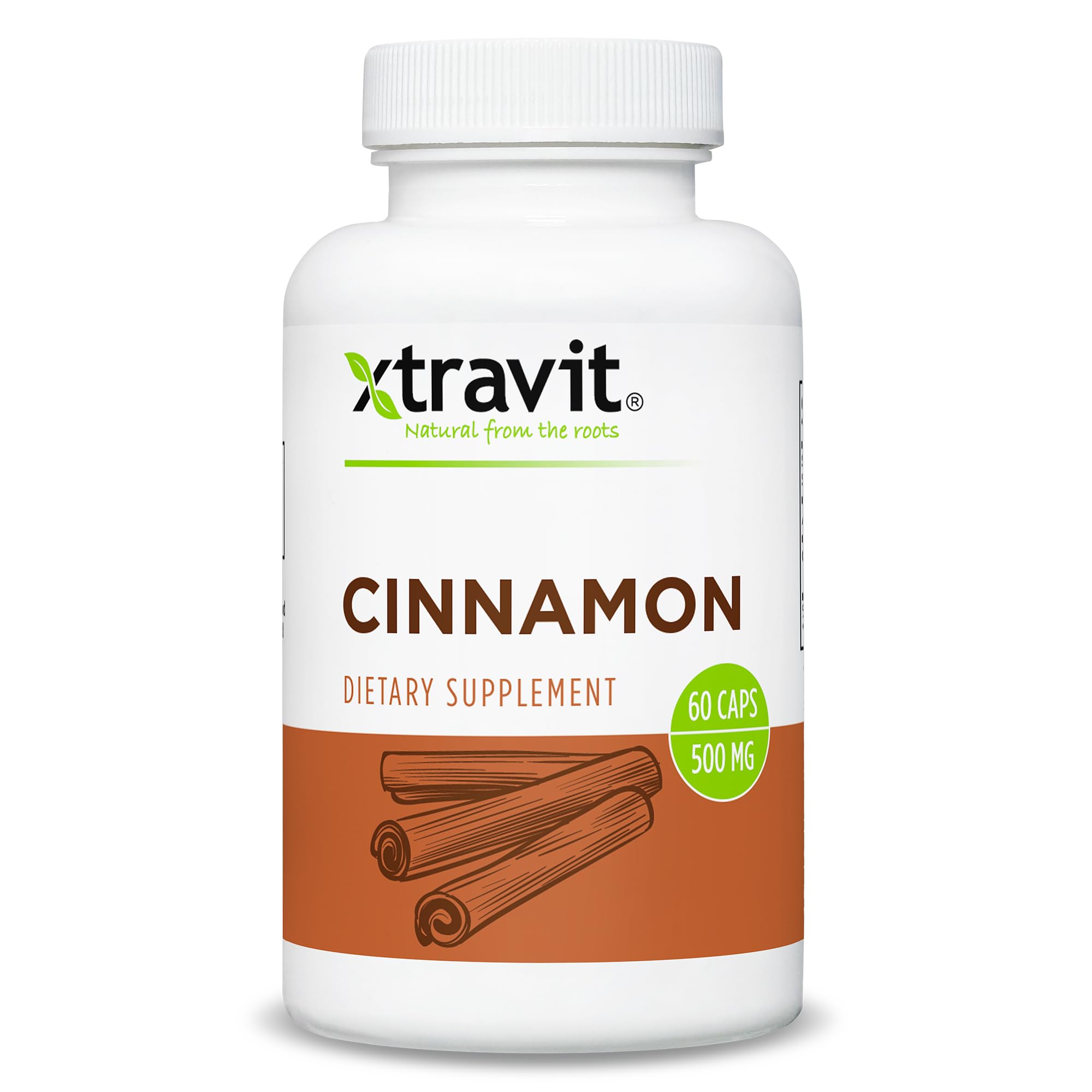 Xtravit Cinnamon Bark Supplement Natural Energy Metabolism & Digestive Support for Men & Women - Promotes Collagen for Healthy Hair Skin & Nails - Non-GMO Gluten-Free No Fillers 60 Capsules