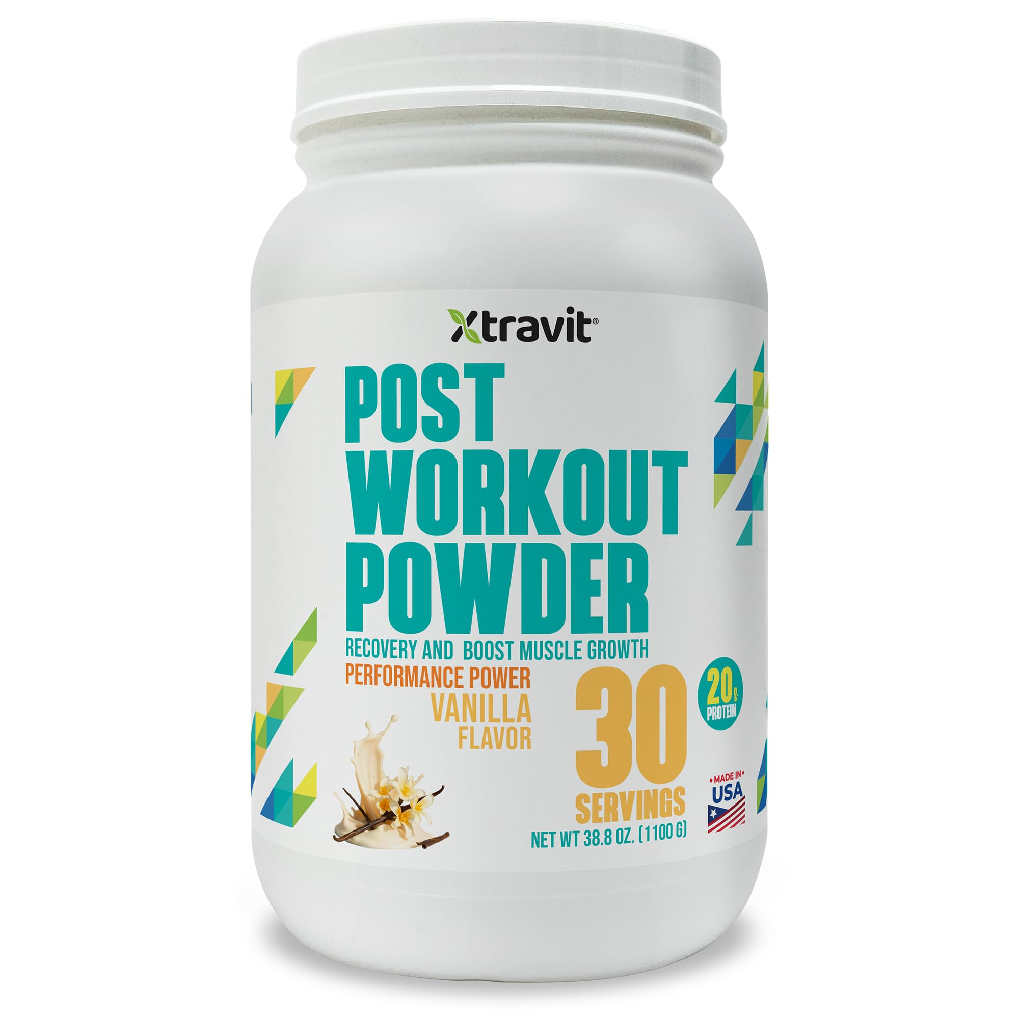 Xtravit Post Workout Powder - Natural Vanilla Nutrition Supplement with 20g Protein Essential Amino Acids Creatine & GI Support for Men & Women - No Added Sugar or Fillers 38.8 oz. 30 Servings