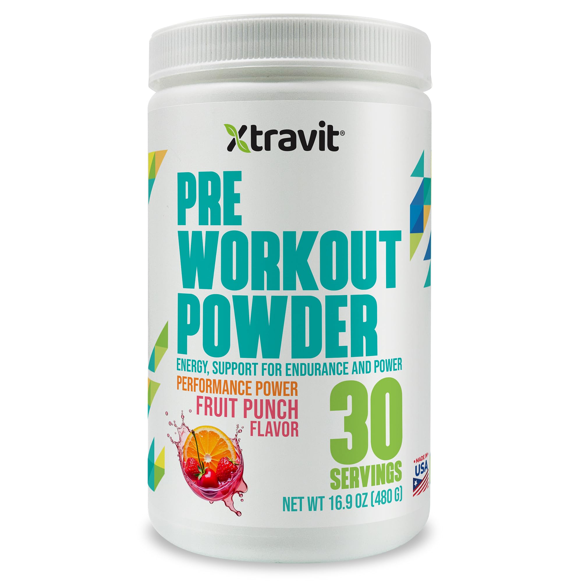 Xtravit Pre Workout Fruit Punch Powder - Thermogenic Gym Supplement for Men & Women - Support Energy Lean Muscle Growth & Nutrition - Non GMO Filler Free 38.8 oz. 30 Servings