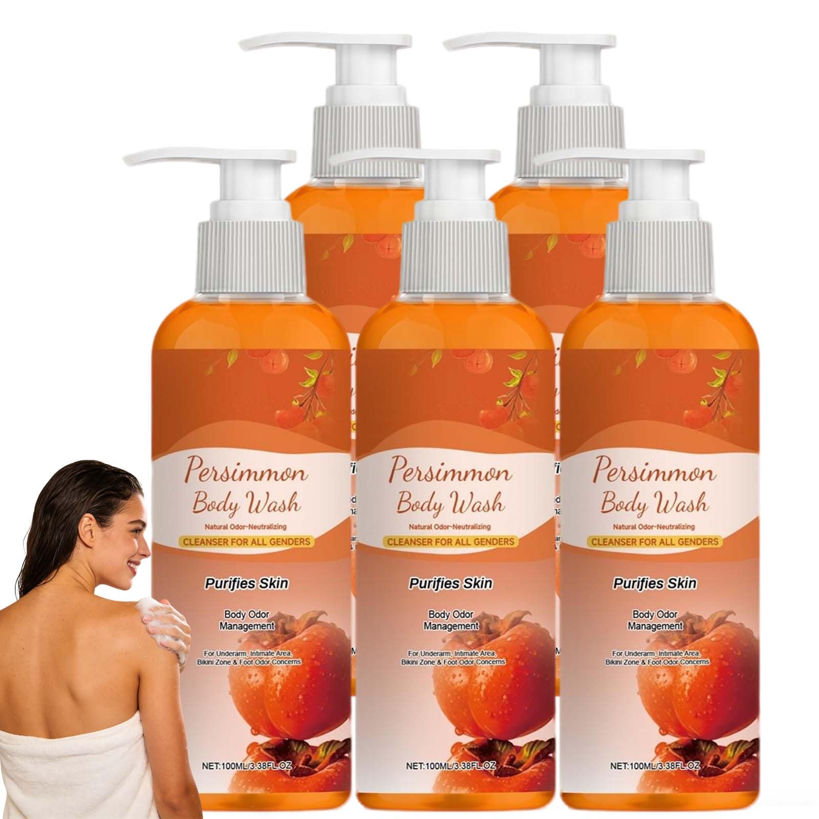 Persimmon Gel Douche pour Personnes âgées Anti Odeur Corps Contrôle des Odeurs à l'extrait de Persimmon Élimine Les Odeurs Cuisses et Aisselles Hydratant Longue Durée (5PCS) 5 pièces.