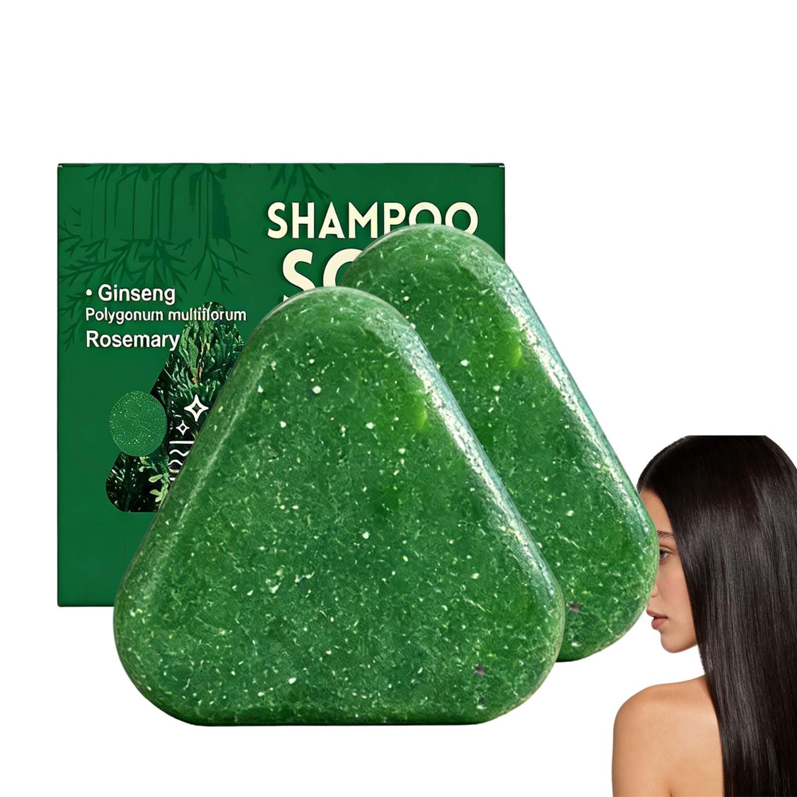 XUSHAOLUN Triangle shampoo bar with herbal ginseng and ginger natural green soap for strengthening hair volumizing and thickening solid shampoo bar shampoos (2PCS)