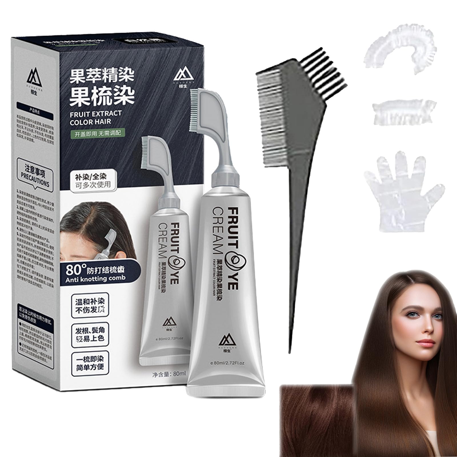Xusheng Black Fruit Dyeing Cream Fruit Essence Hair Dyeing Comb Fruit Dye for Hair Fruit Dye Cream Black Fruit Dyeing Cream with Comb Hair Dye Cream with Comb (1*Chestnut Brown)
