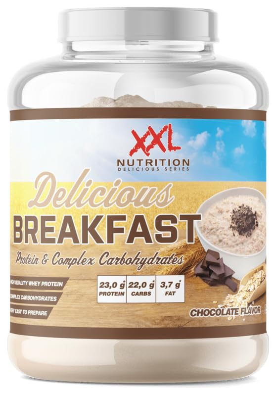 Delicious Breakfast Successful athletes start their day with a balanced breakfast full of high-quality proteins, complex carbohydrates and unsaturated fats. For those who find it difficult to collect this themselves, or simply love a quick, tasty and super nutritious breakfast, there is Delicious Breakfast. This breakfast porridge is bursting with high-quality ingredients that provide your body with optimal nourishment for a tough training day. But Delicious Breakfast is also ideal as a snack. Available in 3 delicious flavors, so from now on you will never be bored again. All the nutrients you need Delicious Breakfast contains an optimal composition of pure and high-quality ingredients. The complex carbohydrates come from, among other things, pure wheat, oats and corn. The 20 grams of high-quality proteins per serving come from whey protein and contribute to the growth of muscle mass. Delicious Breakfast also contains a small amount of unsaturated fats, no less than 8 fiber and no added sugar. With Delicious Breakfast you are assured of a nutritious and delicious start to the day. Ready in an instant Because Delicious Breakfast has been co-developed to fit perfectly into a busy lifestyle, all you need to add is warm milk or another drink of your choice. To make it a real treat, you can easily add some extra fruit or peanut butter. Are you in such a hurry that you can't make hot porridge? Then you can also shake Delicious Breakfast with cold milk or another drink of your choice in a shake cup to make a nutritious breakfast shake. Use and dosage Take 2 scoops of Delicious Breakfast (50 grams) and add 50-100 ml of warm milk or another drink of your choice while stirring. Of course you can adjust the ratio to your own taste For a thicker porridge, add less milk or another drink of your choice, and for a thinner porridge, add more. Looking for other delicious and nutritious breakfast options? Then take a look at the Delicious Pancakes! INGREDIENTS Whey protein concentrate (milk, emulsifier: soy lecithin), buckwheat flakes, whole wheat flour, wheat flour, wheat bran (gluten), corn starch, dietary fiber: inulin, flavoring: chocolate, oat flour, low-fat cocoa powder, sweetener: sucralose. INSTRUCTIONS FOR USE Take 50 g (2 scoops) of Delicious Breakfast and add 50-100 ml of warm water or warm milk while stirring. SAFETY WARNING This product contains sweeteners. Do not exceed the recommended daily intake. Store in a dry and cool place and out of the reach of children. Food supplements are not a substitute for a varied and balanced diet and a healthy lifestyle See moreXXL Nutrition - Delicious Breakfast - 20 Gram Eiwit - Eiwitrijk Ontbijt of Snack - Whey Protein Melkeiwit - Complexe Koolhydraten - Diverse Smaken - Chocolade - 1000 Gram (20 doseringen) Delicious Breakfast Succesvolle sporters beginnen hun dag met een uitgebalanceerd ontbijt vol hoogwaardige eiwitten, complexe koolhydraten en onverzadigde vetten. Voor wie het lastig vindt dit zelf bij elkaar te verzamelen, of gewoon gek is op een snel, lekker én supervoedzaam ontbijt, is er Delicious Breakfast. Deze ontbijtpap barst van de kwalitatief hoogwaardige ingrediënten waarmee jij jouw lichaam optimaal voedt voor een zware trainingsdag. Maar ook als snack is Delicious Breakfast ideaal. Verkrijgbaar in 3 overheerlijke smaken, dus vanaf nu zal het ontbijt je nooit meer vervelen. Alle voedingsstoffen die jij nodig hebt Delicious Breakfast bevat een optimale samenstelling van pure en kwalitatief hoogwaardige ingrediënten. De complexe koolhydraten komen uit onder andere pure tarwe, haver en maïs. De 20 gram hoogwaardige eiwitten per serving komen uit whey proteïne en dragen bij aan de groei van spiermassa. Tevens bevat Delicious Breakfast een kleine hoeveelheid onverzadigde vetten, maar liefst 8 vezels en geen toegevoegde suiker. Met Delicious Breakfast ben je verzekerd van een voedzame- en heerlijke start van de dag. Klaar in een handomdraai Omdat Delicious Breakfast mede-ontwikkeld is om perfect in een drukke levensstijl te passen, is het enige dat je eraan toe hoeft te voegen warme melk of een andere drank naar keuze. Om er een ware traktatie van te maken voeg je gemakkelijk wat extra fruit of pindakaas toe. Heb je zoveel haast dat je er geen warme pap van kunt maken? Dan kun je Delicious Breakfast ook met koude melk of een andere drank naar keuze shaken in een shakebeker om zo een voedzame ontbijtshake te maken. Gebruik en dosering Neem 2 maatscheppen Delicious Breakfast (50 gram) en voeg hier al roerend 50-100 ml warme melk of een andere drank naar keuze. Uiteraard kun je de verhouding naar eigen smaak aanpassen voeg voor een dikkere pap minder melk of een andere drank naar keuze, en voor een dunnere pap meer. Op zoek naar andere heerlijke en voedzame ontbijtopties? Kijk dan ook eens naar de Delicious Pancakes! INGREDIËNTEN Wei-eiwitconcentraat (melk, emulgator: soja lecithine), boekweitvlokken, volkorenbloem, tarwebloem, tarwezemelen (gluten), maïszetmeel, voedingsvezel: inuline, smaakaroma: chocolade, havermeel, magere cacaopoeder, zoetstof: sucralose. GEBRUIKSAANWIJZING Neem 50 g (2 maatscheppen) Delicious Breakfast en voeg al roerend 50-100 ml warm water of warme melk toe. VEILIGHEIDSWAARSCHUWING Dit product bevat zoetstoffen. De aanbevolgen dagelijkse inname niet overschrijden. Op een droge en koele plaats en buiten het bereik van kinderen bewaren. Voedingssupplementen zijn geen vervanging van een gevarieerde en evenwichtige voeding en een gezonde levensstijl Meer bekijken