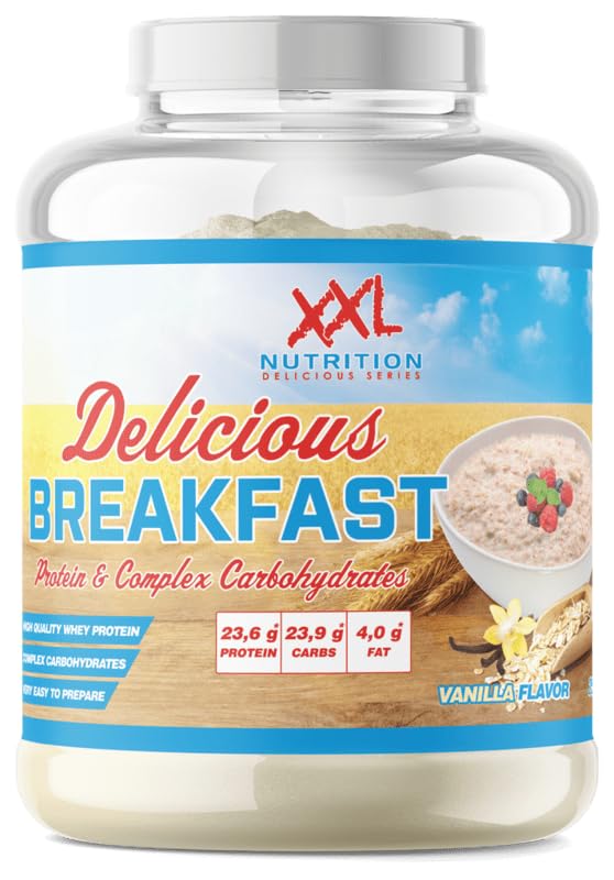 Delicious Breakfast Successful athletes start their day with a balanced breakfast full of high-quality proteins, complex carbohydrates and unsaturated fats. For those who find it difficult to collect this themselves, or simply love a quick, tasty and super nutritious breakfast, there is Delicious Breakfast. This breakfast porridge is bursting with high-quality ingredients that provide your body with optimal nourishment for a tough training day. But Delicious Breakfast is also ideal as a snack. Available in 3 delicious flavors, so from now on you will never be bored again. All the nutrients you need Delicious Breakfast contains an optimal composition of pure and high-quality ingredients. The complex carbohydrates come from, among other things, pure wheat, oats and corn. The 20 grams of high-quality proteins per serving come from whey protein and contribute to the growth of muscle mass. Delicious Breakfast also contains a small amount of unsaturated fats, no less than 8 fiber and no added sugar. With Delicious Breakfast you are assured of a nutritious and delicious start to the day. Ready in an instant Because Delicious Breakfast has been co-developed to fit perfectly into a busy lifestyle, all you need to add is warm milk or another drink of your choice. To make it a real treat, you can easily add some extra fruit or peanut butter. Are you in such a hurry that you can't make hot porridge? Then you can also shake Delicious Breakfast with cold milk or another drink of your choice in a shake cup to make a nutritious breakfast shake. Use and dosage Take 2 scoops of Delicious Breakfast (50 grams) and add 50-100 ml of warm milk or another drink of your choice while stirring. Of course you can adjust the ratio to your own taste For a thicker porridge, add less milk or another drink of your choice, and for a thinner porridge, add more. Looking for other delicious and nutritious breakfast options? Then take a look at the Delicious Pancakes! INGREDIENTS Whey protein concentrate (milk, emulsifier: soy lecithin), buckwheat flakes, whole wheat flour, wheat flour, wheat bran (gluten), corn starch, dietary fiber: inulin, oat flour, flavoring: vanilla, sweetener: sucralose. INSTRUCTIONS FOR USE Take 50 g (2 scoops) of Delicious Breakfast and add 50-100 ml of warm water or warm milk while stirring. SAFETY WARNING This product contains sweeteners. Do not exceed the recommended daily intake. Store in a dry and cool place and out of the reach of children. Food supplements are not a substitute for a varied and balanced diet and a healthy lifestyle See moreXXL Nutrition - Delicious Breakfast - 20 Gram Eiwit - Eiwitrijk Ontbijt of Snack - Whey Protein Melkeiwit - Complexe Koolhydraten - Diverse Smaken - Vanille - 2500 Gram (50 doseringen) Delicious Breakfast Succesvolle sporters beginnen hun dag met een uitgebalanceerd ontbijt vol hoogwaardige eiwitten, complexe koolhydraten en onverzadigde vetten. Voor wie het lastig vindt dit zelf bij elkaar te verzamelen, of gewoon gek is op een snel, lekker én supervoedzaam ontbijt, is er Delicious Breakfast. Deze ontbijtpap barst van de kwalitatief hoogwaardige ingrediënten waarmee jij jouw lichaam optimaal voedt voor een zware trainingsdag. Maar ook als snack is Delicious Breakfast ideaal. Verkrijgbaar in 3 overheerlijke smaken, dus vanaf nu zal het ontbijt je nooit meer vervelen. Alle voedingsstoffen die jij nodig hebt Delicious Breakfast bevat een optimale samenstelling van pure en kwalitatief hoogwaardige ingrediënten. De complexe koolhydraten komen uit onder andere pure tarwe, haver en maïs. De 20 gram hoogwaardige eiwitten per serving komen uit whey proteïne en dragen bij aan de groei van spiermassa. Tevens bevat Delicious Breakfast een kleine hoeveelheid onverzadigde vetten, maar liefst 8 vezels en geen toegevoegde suiker. Met Delicious Breakfast ben je verzekerd van een voedzame- en heerlijke start van de dag. Klaar in een handomdraai Omdat Delicious Breakfast mede-ontwikkeld is om perfect in een drukke levensstijl te passen, is het enige dat je eraan toe hoeft te voegen warme melk of een andere drank naar keuze. Om er een ware traktatie van te maken voeg je gemakkelijk wat extra fruit of pindakaas toe. Heb je zoveel haast dat je er geen warme pap van kunt maken? Dan kun je Delicious Breakfast ook met koude melk of een andere drank naar keuze shaken in een shakebeker om zo een voedzame ontbijtshake te maken. Gebruik en dosering Neem 2 maatscheppen Delicious Breakfast (50 gram) en voeg hier al roerend 50-100 ml warme melk of een andere drank naar keuze. Uiteraard kun je de verhouding naar eigen smaak aanpassen voeg voor een dikkere pap minder melk of een andere drank naar keuze, en voor een dunnere pap meer. Op zoek naar andere heerlijke en voedzame ontbijtopties? Kijk dan ook eens naar de Delicious Pancakes! INGREDIËNTEN Wei-eiwitconcentraat (melk, emulgator: soja lecithine), boekweitvlokken, volkorenbloem, tarwebloem, tarwezemelen (gluten), maïszetmeel, voedingsvezel: inuline, havermeel, smaakaroma: vanille, zoetstof: sucralose. GEBRUIKSAANWIJZING Neem 50 g (2 maatscheppen) Delicious Breakfast en voeg al roerend 50-100 ml warm water of warme melk toe. VEILIGHEIDSWAARSCHUWING Dit product bevat zoetstoffen. De aanbevolgen dagelijkse inname niet overschrijden. Op een droge en koele plaats en buiten het bereik van kinderen bewaren. Voedingssupplementen zijn geen vervanging van een gevarieerde en evenwichtige voeding en een gezonde levensstijl Meer bekijken
