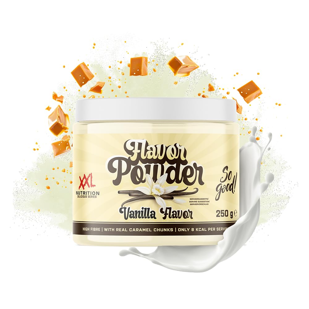 A bowl of oatmeal in the morning, a cup of yogurt in the afternoon, and a protein shake in the evening after your workout: does your diet look like this? And do you want a different flavor? Then our Flavor Powder is the perfect addition to transform your daily ritual into a delicious adventure. A touch of flavor powder: eating for a true sports fan can get quite monotonous. Cottage cheese, yogurt, porridge, egg pancakes: all delicious products. But not if they're on the menu day after day. It's time for a change! Our Flavor Powder creates an explosion of taste that makes every bite a celebration. A flavor you won't get tired of. With Flavor Powder, your daily yogurt won't become a chore, but a pleasure. Flavor Powder is available in 3 delicious flavors: Vanilla Flavor: a touch of vanilla adds a subtle sweet note. Brownie Flavor: the delicious taste of freshly baked brownies, without the baking. Salted Caramel Flavor: a perfect balance of salty and sweet for irresistible enjoyment. With our Flavor Powder, you can give your dishes and drinks an incredible taste without overloading them with sugar or calories. One serving (3 grams) contains only 8 calories and 0.7 grams of sugar. So you can indulge guilt-free. INGREDIENTS Inulin, caramel pieces (sugar, cocoa butter, rice starch, rice starch, raising agent (sodium bicarbonate), natural flavorings, sweeteners (sucralose, stevia glycosides), flavorings (contains sulfites), lactase, solvent (silicon, carbon dioxide), color (carotene). DIRECTIONS Take 1 scoop (3 grams of powder) and mix it into your desired meal. SAFETY WARNING This product contains sweeteners. Do not exceed the recommended daily dose. Store in a cool, dry place out of reach of children. Food supplements are not a substitute for a varied and balanced diet and a healthy lifestyle. See moreFlavor Powder - XXL Nutrition Vanille 250 GrammDESCRIPTION DU PRODUIT DESCRIPTION DU PRODUIT Un bol de flocons d'avoine le matin, une tasse de yogourt l'après-midi et un shake protéiné le soir après l'entraînement : votre alimentation ressemble-t-elle à ceci ? Et voulez-vous une saveur différente? Alors notre Flavor Powder est le complément parfait pour transformer votre rituel quotidien en une délicieuse aventure. Une touche de poudre de flavor: manger un vrai fan de sport peut devenir assez monotone. fromage cottage, yaourt, porridge, crêpes aux œufs: tous des produits délicieux. Mais pas s'ils sont au menu jour après jour. Il est temps de changer ! Notre poudre Flavor crée une explosion de goût qui fait de chaque bouchée une fête. Une saveur dont vous ne pouvez pas vous lasser. Avec Flavor Powder, votre yaourt quotidien ne deviendra pas un must, mais un plaisir. Flavor Powder est disponible en 3 saveurs délicieuses : Vanilla Flavor : une touche de vanille apporte une subtile note sucrée. Brownie Flavor: le délicieux goût des brownies fraîchement cuits au four, sans cuisson. Salted Caramel Flavor: un équilibre parfait entre salé et sucré pour un plaisir irrésistible. Avec notre Flavor Powder, vous donnez à vos plats et boissons un goût incroyable sans les surcharger de sucre ou de calories. Une portion (3 grammes) ne contient que 8 calories et 0,7 gramme de sucre. Ainsi, vous pouvez profiter sans mauvaise conscience INGRÉDIENTS Inuline, morceaux de caramel (sucre, beurre de cacao, amidon de riz, amidon de riz, agent levant (bicarbonate de sodium), arômes naturels, édulcorants (sucralose, glycosides de stéviol de stevia), arômes (contient sulfites), lactase, solvant (silicium). dioxyde de carbone), colorant (carotène). MODE D'EMPLOI Prenez 1 cuillère à mesurer (3 grammes de poudre) et mélangez-la avec le repas souhaité. AVERTISSEMENT DE SÉCURITÉ Ce produit contient des édulcorants. Ne pas dépasser la dose quotidienne recommandée. Conserver dans un endroit sec et frais et hors de portée des enfants. Les compléments alimentaires ne remplacent pas une alimentation variée et équilibrée et un mode de vie sain Voir plus