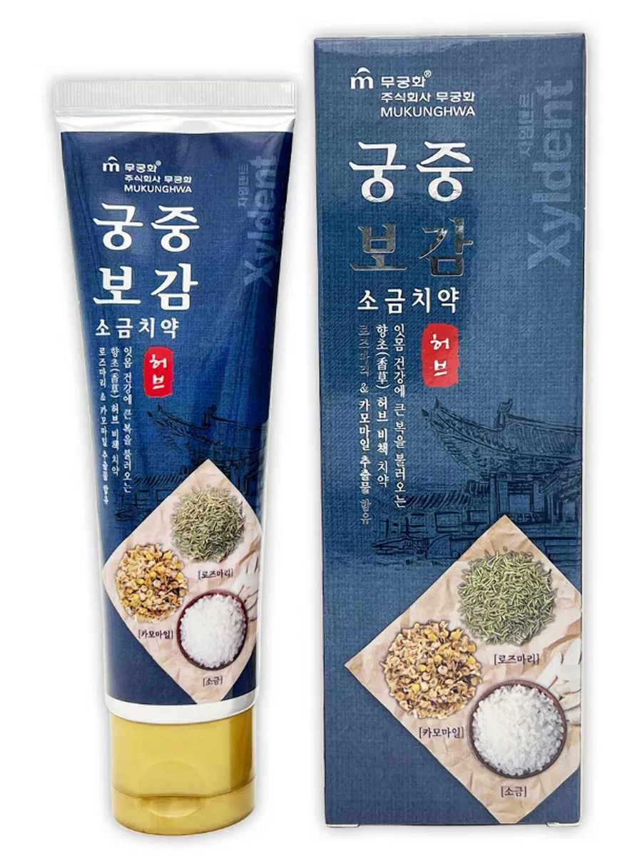 Xyldent Gel Toothpaste with Salt, Vitamin E, and Plant Extracts with Reduced Fluoride, Herbs, 110 g. Sea of Japan salt and herbs for healthy teeth and gums! Sea of Japan salt prevents gum disease and maintains their health, improves blood circulation in periodontal tissues, removes bacterial plaque and protects against its recurrence. Vitamin E enhances tissue regeneration, strengthens gums, and prevents periodontitis and gingivitis. This toothpaste has a comprehensive effect, perfectly cleans the mouth, prevents caries, periodontal disease, and bad breath, and keeps teeth white. Rosemary and chamomile give long-lasting fresh breath. Mint-salty flavor. Directions: Apply a small amount of toothpaste to your toothbrush and brush your teeth and gums with massaging movements.