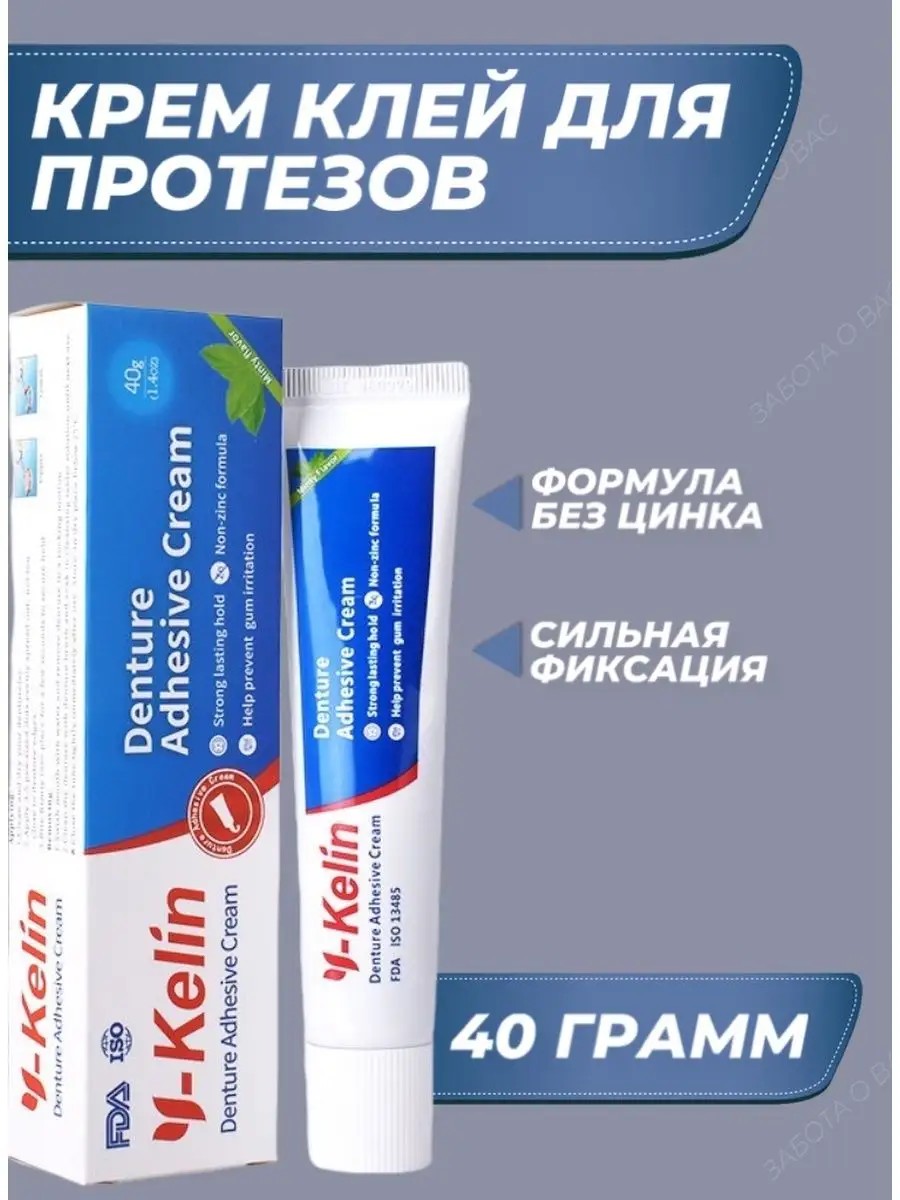 Комплектацию смотрите на фото! Крем для фиксации зубных протезов Y-Kelin. Фиксирующий протезы крем обеспечивает защиту десен от давления, натирания и раздражения. Лёгок в нанесении, сохраняет свои свойства под воздействием горячей и холодной пищи, не меняет вкус еды и напитков. Не смывается слюной- Не содержит цинка, а значит, разрешён для длительного применения. Преимущества: - улучшается подгонка конструкции; - обеспечивается сильная, долгая фиксация; - исключается попадание пищи под конструкцию. Фиксирующий крем Y-Kelin подходит для полных и частично съёмных протезов. Как использовать: на очищенный, высушенный протез нанести не очень близко к краю немного средства тонкими полосочками. Хорошо прижать, кусать вниз на протяжении нескольких секунд с целью обеспечения надёжного крепления. Инструкция по применению: 1. Почистить протез. 2. Нанести небольшое количество крема на чистый и сухой протез короткими полосками или горошинами. 3. Прополоскать рот тёплой водой. 4. Вставить протез в ротовую полость и плавно прижать его к десне. 5. Сомкнуть челюсти на несколько секунд для лучшей фиксации. Крем рекомендуется наносить вдоль протеза, посередине, не захватывая его края. Для удаления остатков крема с протеза и десен используйте салфетку, пропитанную маслом. Доп. слова для поиска: крем для фиксации зубных протезов / крем для фиксации протезов / крем для протезов зубных / корега для протезов / корега для протезов зубных / клей для протезов / клей для зубных протезов / для зубных протезов / крем для фиксации зубных протезов президент